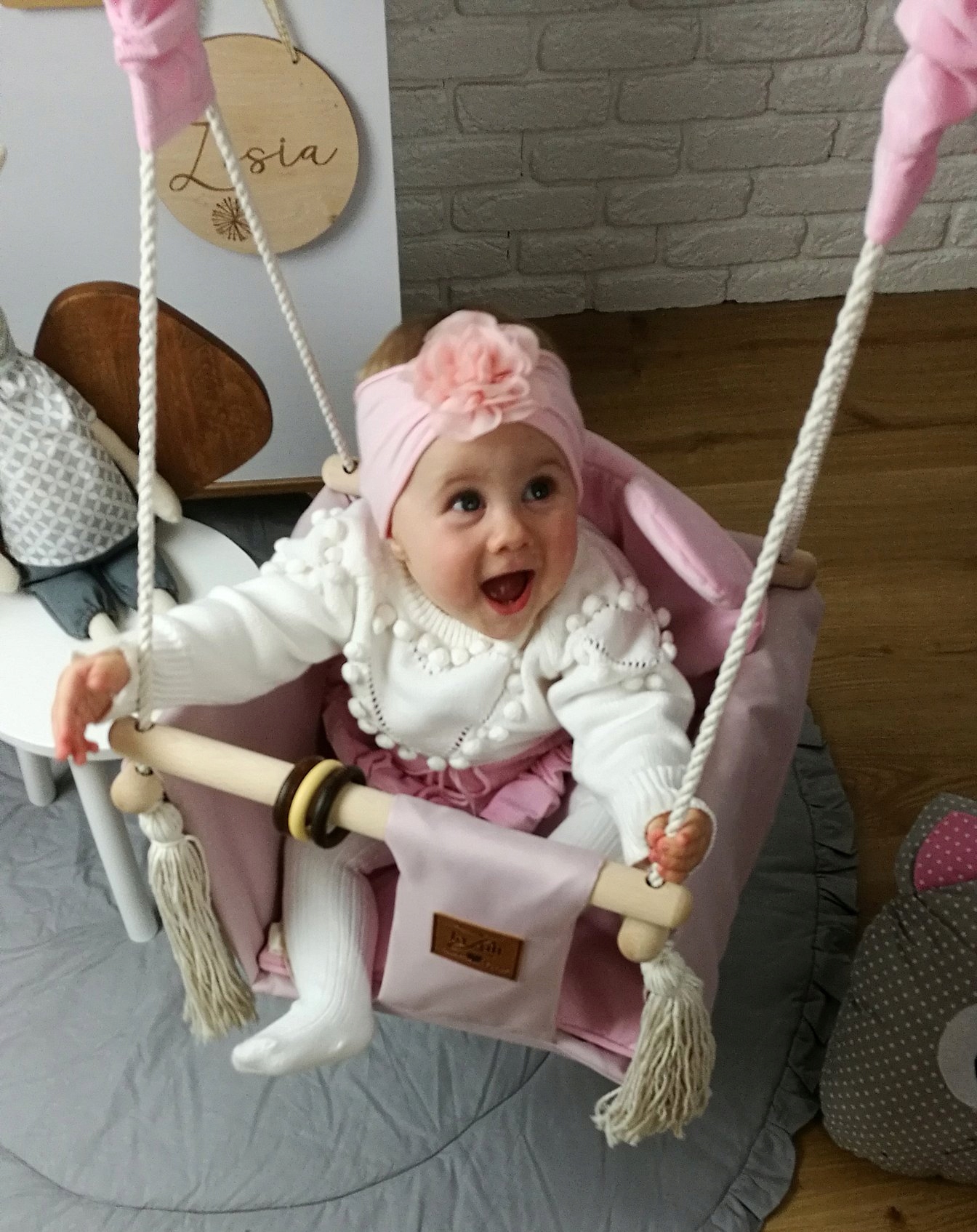 Krásna detská hojdačka z kolekcie Velvet bude slúžiť ako skvelý hrací prvok detskej izby, ale stane sa aj atraktívnym doplnkom, ktorý príjemne zútulní detskú izbu. Svoju veľkú obľúbenosť získala vďaka praktickému a pohodlnému spracovaniu. Pri výrobe hojdačky bol kladený vysoký dôraz na bezpečnosť detí a tak je hojdačka vybavená zosilneným sedákom, vďaka ktorému sa dno príliš neprehýba a bezpečnostným trojbodovým pásom, ktoré dieťa zaistí v sedáku. Drevená konštrukcia je vyrobená z kvalitného bukového masívu, čo mu dodáva dlhú životnosť a potrebnú pevnosť.