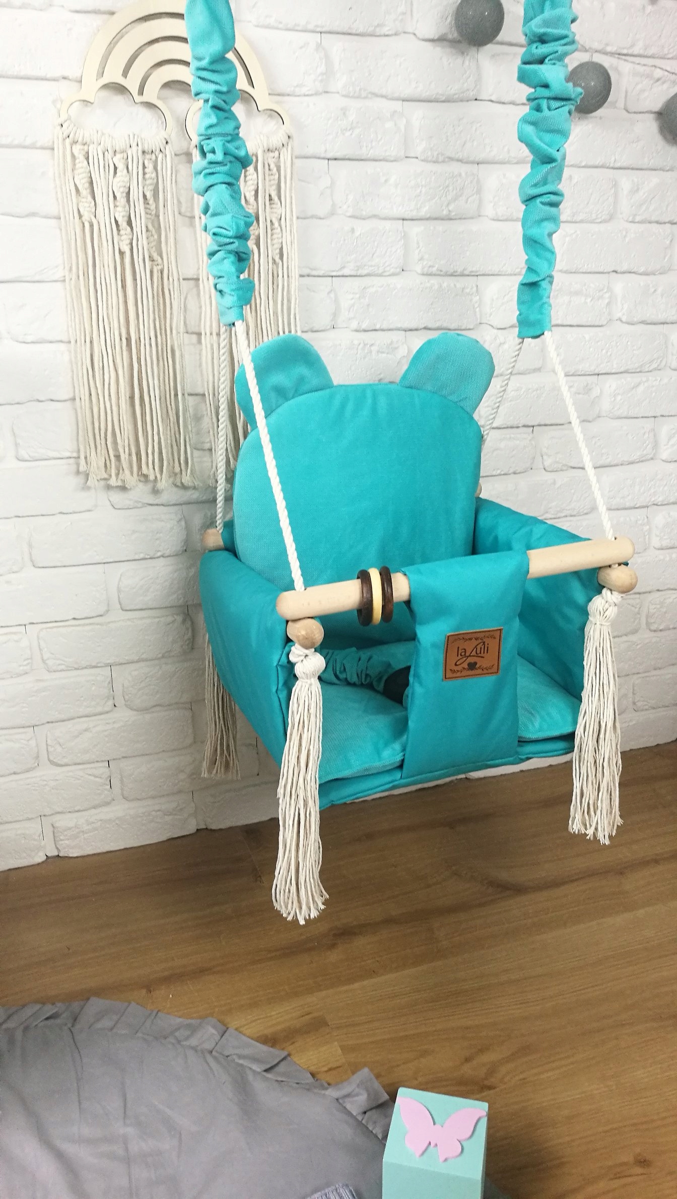 Sympatická silueta zvieratka, ktorá slúži ako opierka a strapce, ktorými je hojdačka ozdobená, upúta pozornosť každého dieťaťa.