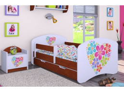 Kvetinové polepy na nábytku v tvare srdca sú hlavným motívom tejto kolekcie. Celú detskú izbičku rýchlo a lacno vybavíte nábytkom z našej ponuky. Ku kvalitnej detskej posteli jednoducho zladíte pevnú skriňu alebo praktickú komodu. Deti tiež rady kreslia a ocenia veľkú plochu písacieho stola. Hračky budú mať svoje miesto v priestrannom úložnom regáli alebo truhlici. Nechýbajú ani koberce.