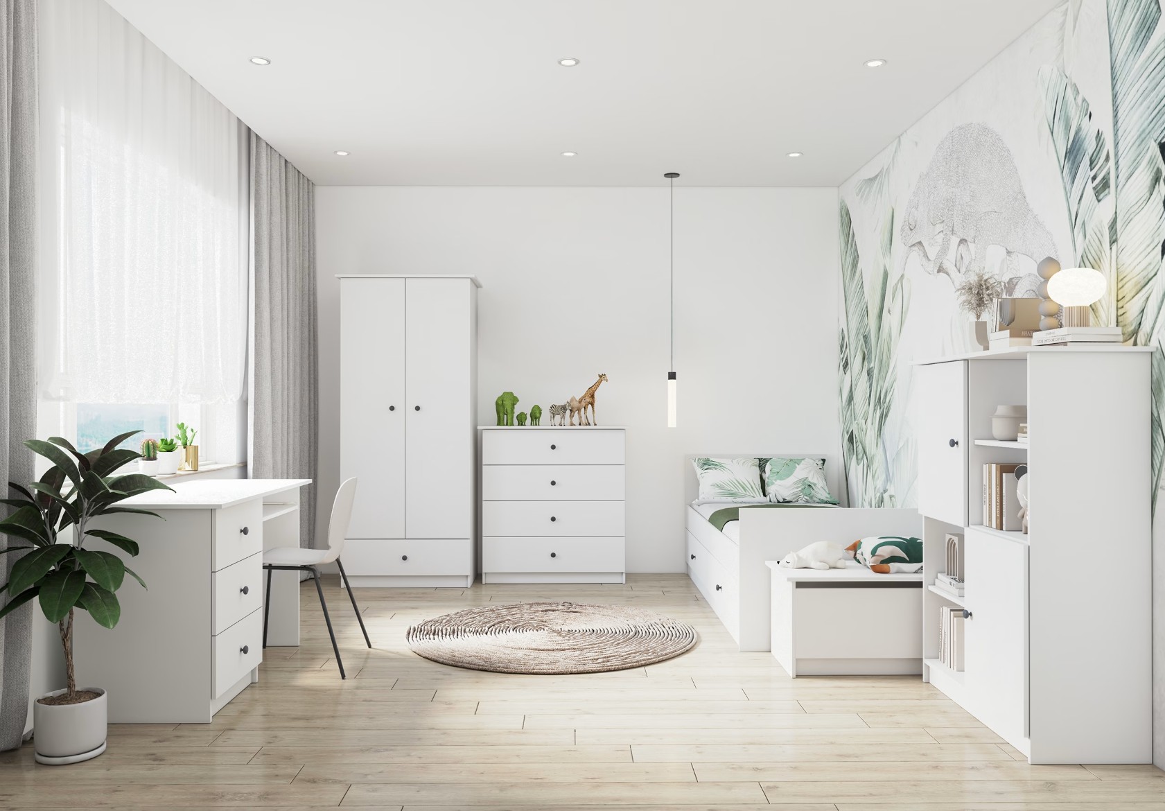Nábytkový systém ponúka široký výber jednotlivých prvkov – od šatníkových skríň, komôd a písacích stolov až po postele či úložné priestory. Vďaka tomu si môžete zostaviť izbu presne podľa priestorových možností aj potrieb vašich detí. Variabilita kolekcie umožňuje ľahké kombinovanie a postupné doplňovanie nábytku.