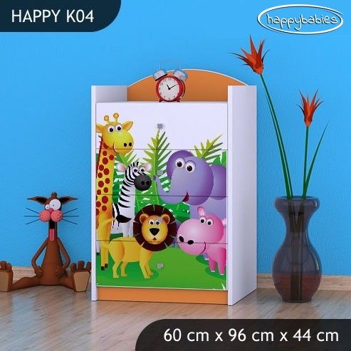 Detské komody patrí do každej detskej izby. Komody sú nielen krásne, ale hlavne praktické. Deťom slúži na uloženie oblečenia, najrôznejších hračiek a drobností a učí ich poriadku. Ponúkame Vám krásnu detskú komodu so štyrmi zásuvkami, ktorá je vyrobená z vysoko kvalitnej lamino dosky a na čelách šuplíkov má krásny farebná potlač, ktorý sa Vášmu dieťaťu určite zapáči. Vybrať si môžete aj farbu nábytku.