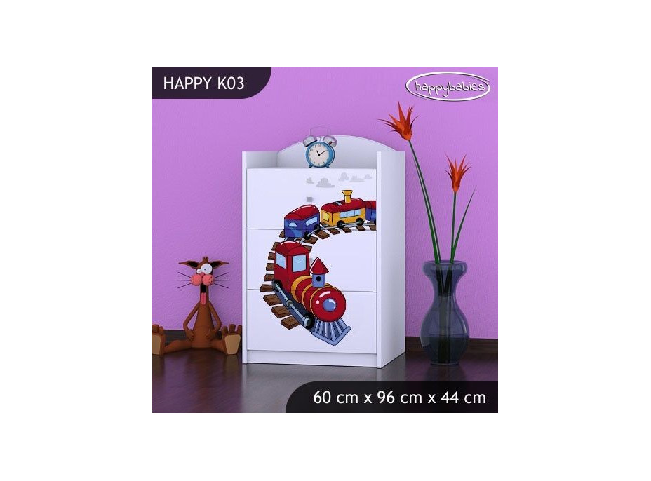 Detské komody patria do každej detskej izby. Komody sú nielen krásne, ale hlavne praktické. Deťom slúžia na uloženie oblečenia, najrôznejších hračiek a drobností a učia ich poriadku. Ponúkame Vám krásnu detskú komodu s tromi zásuvkami, ktorá je vyrobená z vysoko kvalitnej lamino dosky a na čelách šuplíkov má krásnu farebnú potlač, ktorá sa Vášmu dieťaťu určite zapáči. Vybrať si môžete aj farbu nábytku.