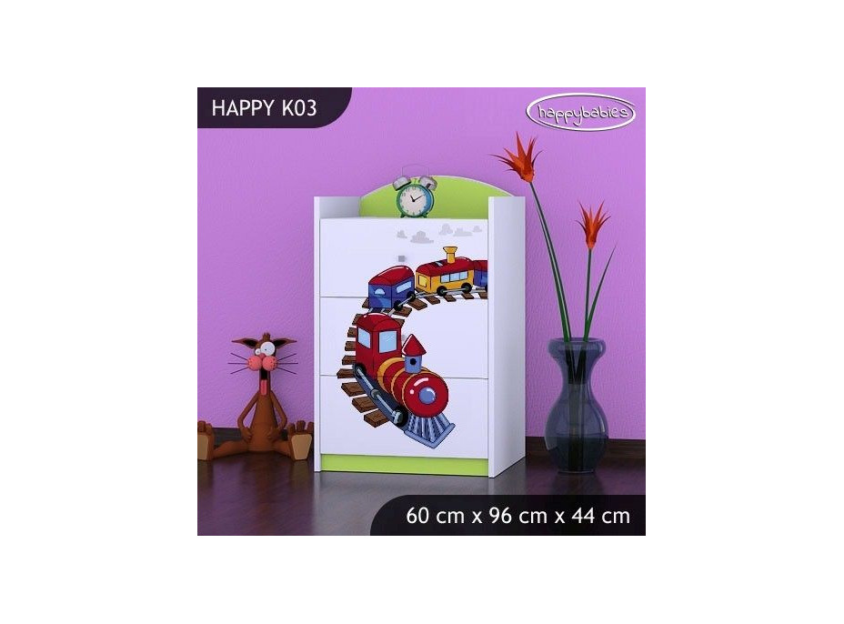 Detské komody patrí do každej detskej izby. Komody sú nielen krásne, ale hlavne praktické. Deťom slúži na uloženie oblečenia, najrôznejších hračiek a drobností a učí ich poriadku. Ponúkame Vám krásnu detskú komodu s tromi zásuvkami, ktorá je vyrobená z vysoko kvalitnej lamino dosky a na čelách šuplíkov má krásny farebná potlač, ktorý sa Vášmu dieťaťu určite zapáči. Vybrať si môžete aj farbu nábytku.