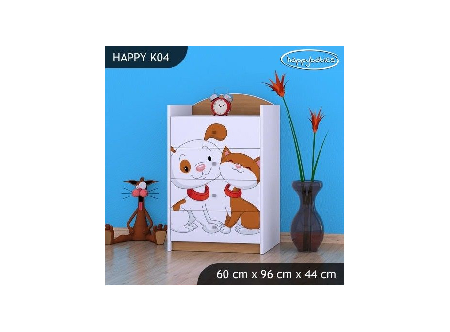 Detské komody patrí do každej detskej izby. Komody sú nielen krásne, ale hlavne praktické. Deťom slúži na uloženie oblečenia, najrôznejších hračiek a drobností a učí ich poriadku. Ponúkame Vám krásnu detskú komodu so štyrmi zásuvkami, ktorá je vyrobená z vysoko kvalitnej lamino dosky a na čelách šuplíkov má krásny farebná potlač, ktorý sa Vášmu dieťaťu určite zapáči. Vybrať si môžete aj farbu nábytku.