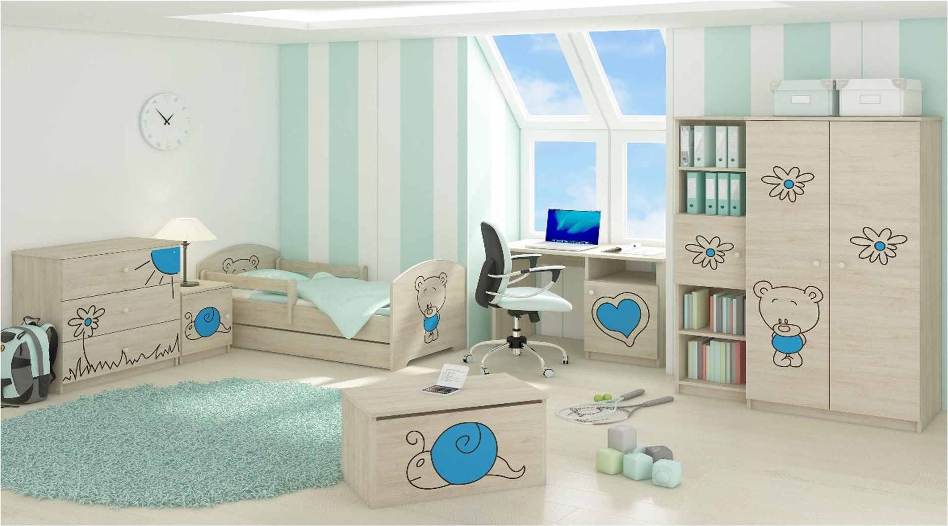 K vytvoreniu vyrezávaných detských vzorov na čelnej strane tejto komody bola použitá vycibrená technológie trojrozmerného gravírovanie. V kombinácii s vysoko kvalitným opracovaním MDF dosky s hrúbkou 16 mm tak nábytok získava úplne unikátne dizajnové efekty, ktoré ocenia aj tí najmenší. Trojrozmerné vzory u detí otvárajú tiež nové brány predstavivosti tým, že dieťa zájde prsty do reliéfu vzorov a dôjde tak u neho k predstavivosti nielen pomocou zraku, ale tiež vďaka hmatu. Táto jedinečná technológia sa tak stáva zdrojom zábavy i rozvoja vášho dieťaťa. Nábytok je ošetrený nezávadným ekologickým lakom, ktorý neohrozuje zdravie vášho dieťaťa. Súčasťou komody sú tri priestranné šuplíky.
