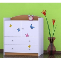 Detské komody patrí do každej detskej izby. Komody sú nielen krásne, ale hlavne praktické. Deťom slúži na uloženie oblečenia, najrôznejších hračiek a drobností a učí ich poriadku. Ponúkame Vám krásnu detskú komodu, ktorá má dve zásuvky a dve zatváracie priehradky. Táto komoda a je vyrobená z vysoko kvalitnej lamino dosky a na čelách šuplíkov a dvierkach priehradiek má krásny farebná potlač, ktorý sa Vášmu dieťaťu určite zapáči. Zvoliť si môžete tiež farbu nábytku, aby dokonale ladil s detským izbičkou.