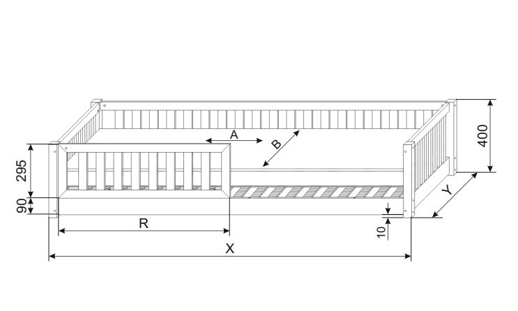 - Odnímateľnú ochrannú bariéru je možné umiestniť na čele postele ako z pravej strany, tak aj z ľavej strany