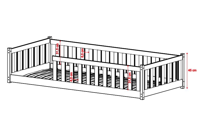 Nízka detská posteľ BETTY je perfektným riešením pre malých prieskumníkov, ktorí sa chcú vo svojej izbe cítiť sebaisto a pohodlne. Vďaka nízkej konštrukcii sa posteľ ľahko prispôsobí aj tým najmenším deťom a poskytne im bezpečný spánok aj ľahký prístup do postele. Nízka posteľ so svojim minimalistickým dizajnom a prívetivým vzhľadom stáva nielen miestom na oddych, ale aj priestorom na hru a kreatívne objavovanie detí. Posteľ je vyrobená z vysoko kvalitného borovicového dreva a spĺňa všetky bezpečnostné štandardy. Posteľ je odolná proti poškriabaniu vďaka trom vrstvám ekologického laku, ktorý je bez zápachu a vyniká vysokou svetlostálosťou.