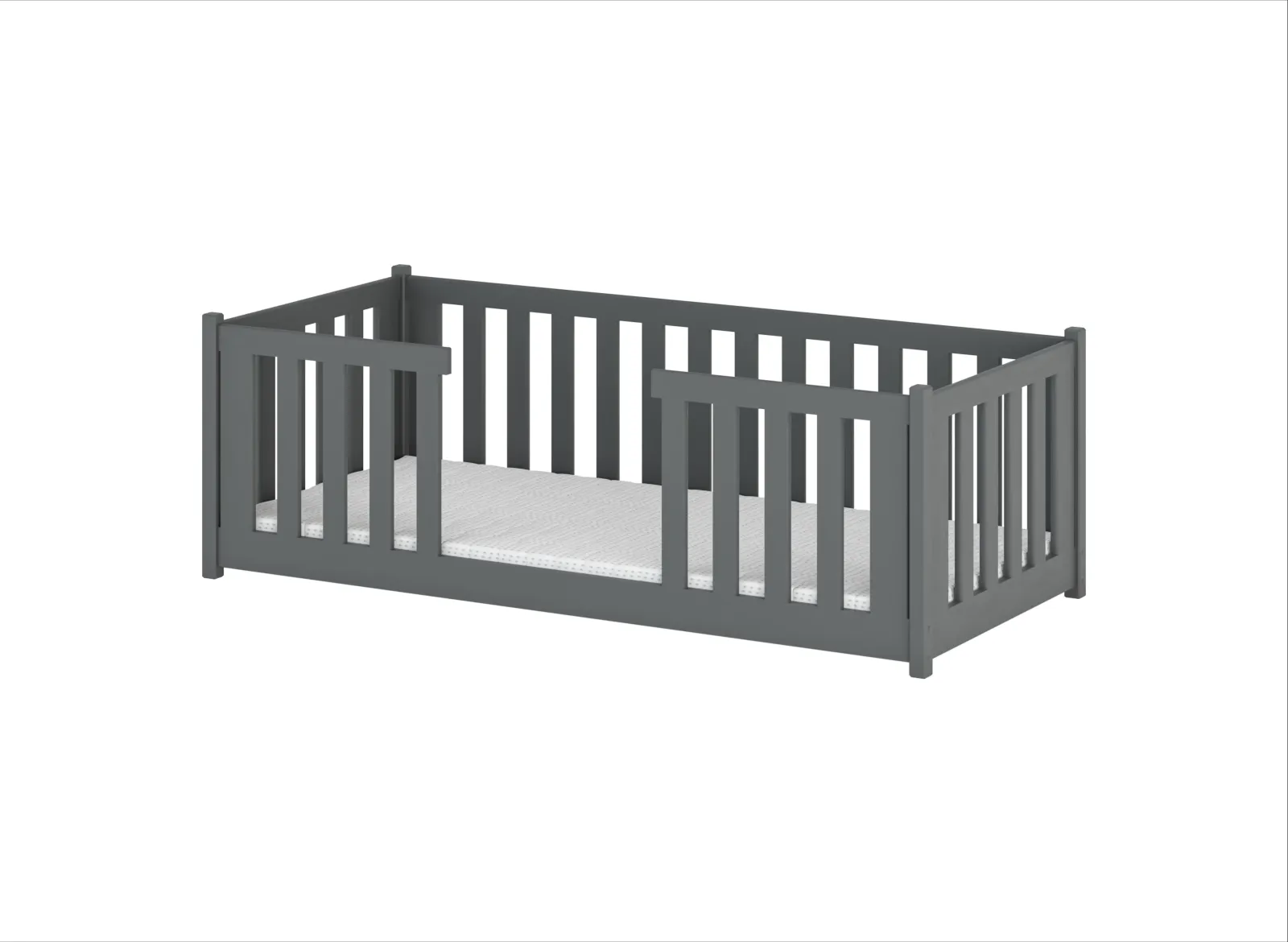 Detská Montessori posteľ z masívu borovice FERDA - 200x90 cm - GRAFITOVÁ