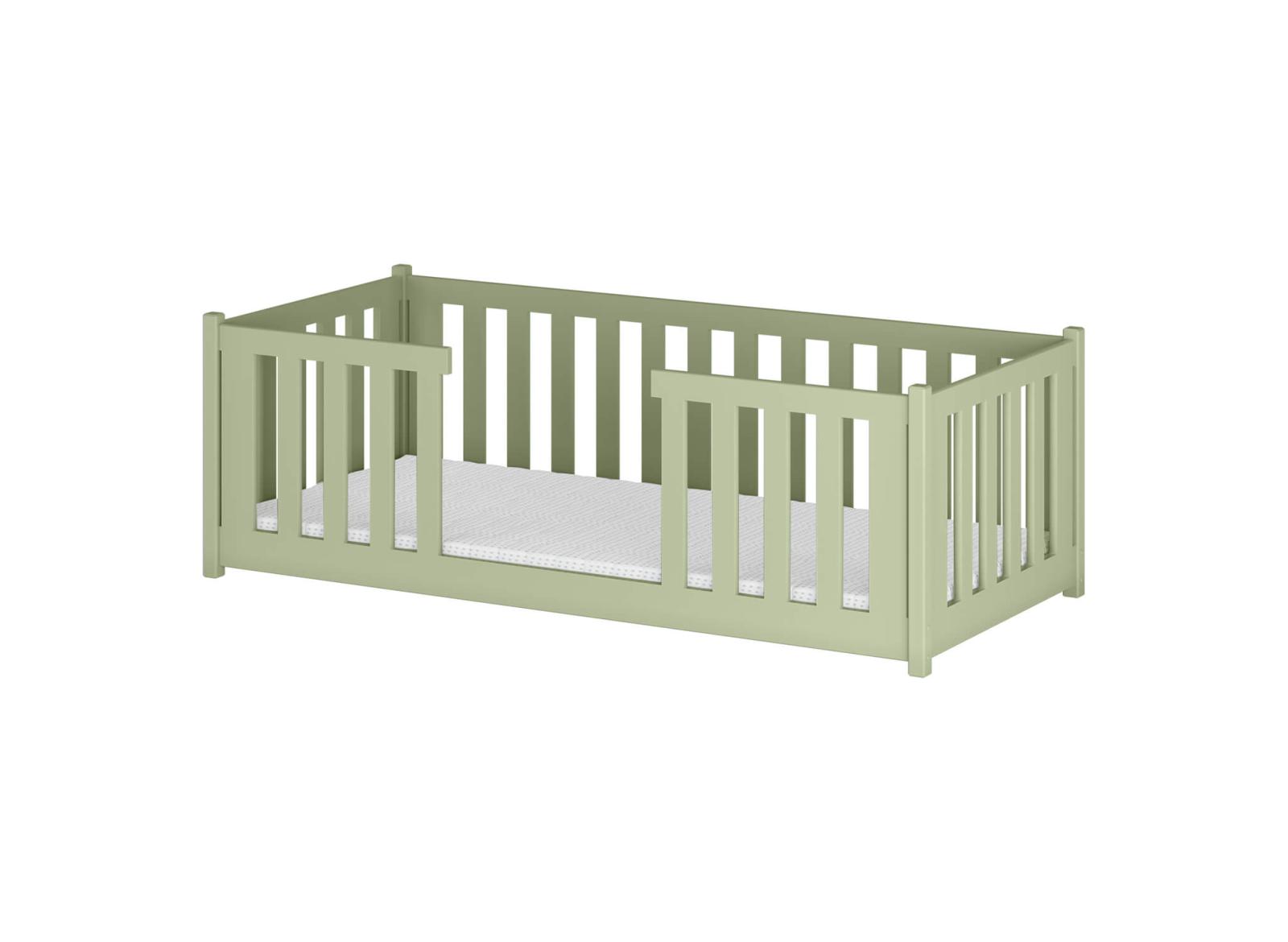 Detská Montessori posteľ z masívu borovice FERDA - 200x90 cm - OLIVOVO ZELENÁ