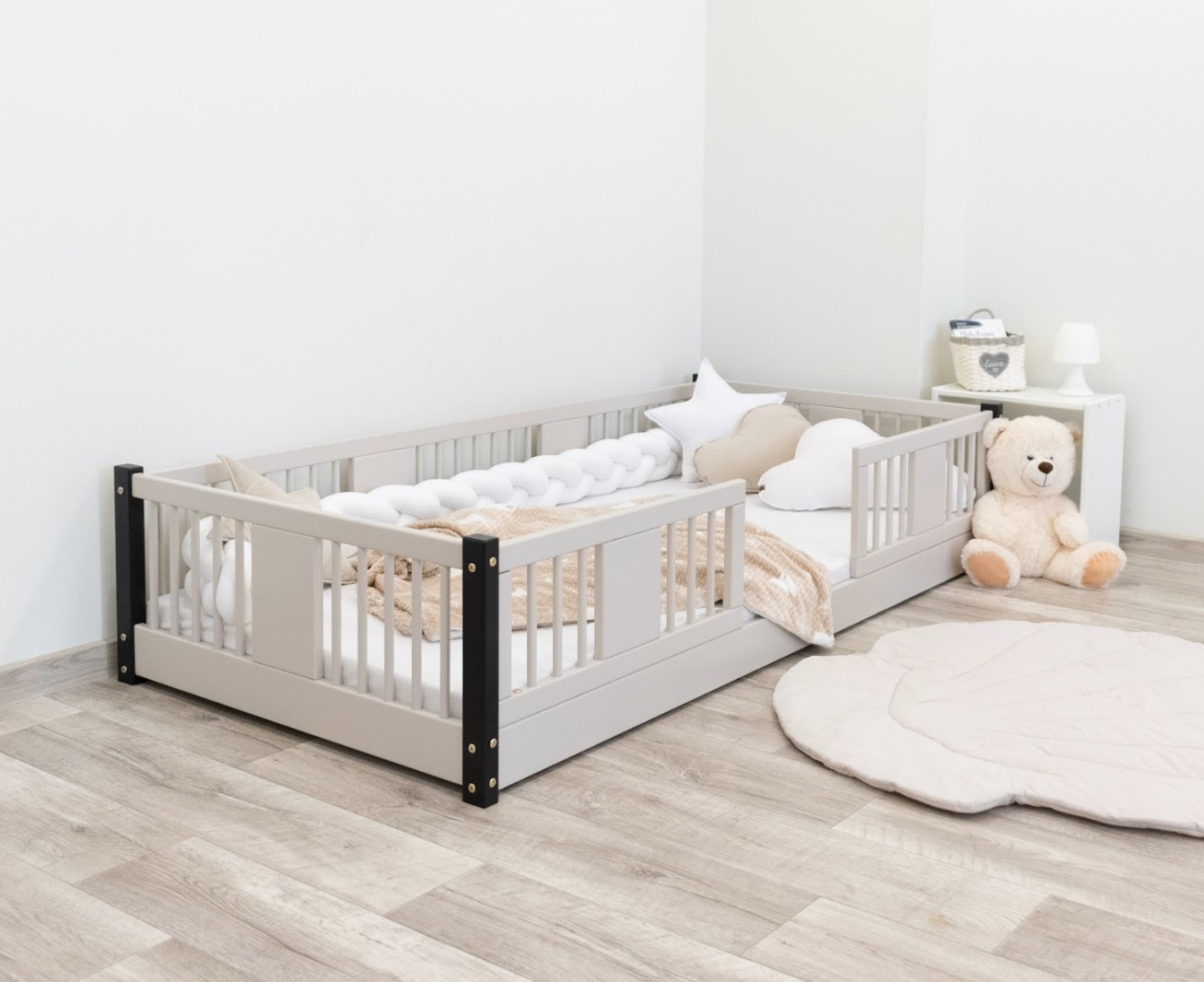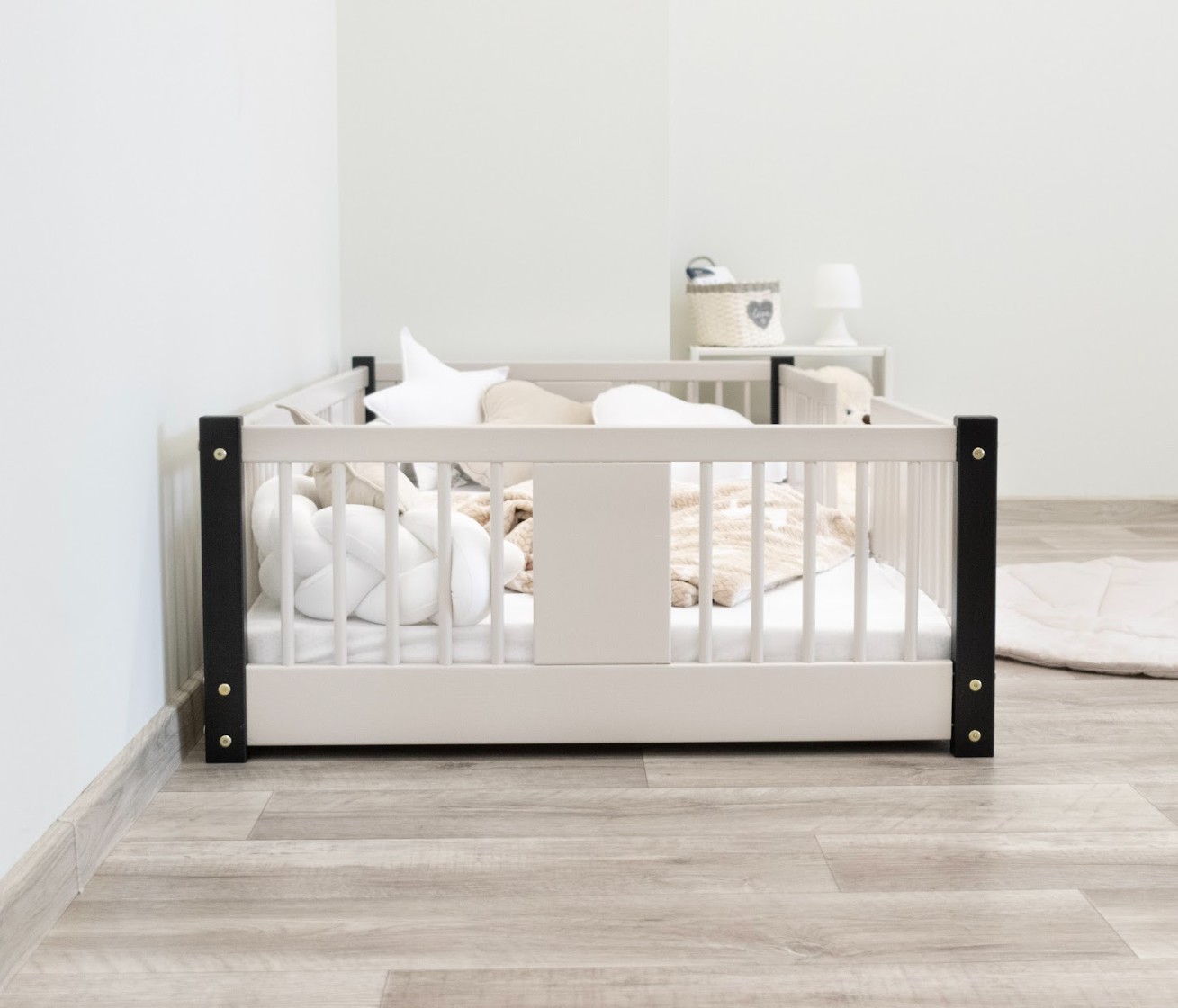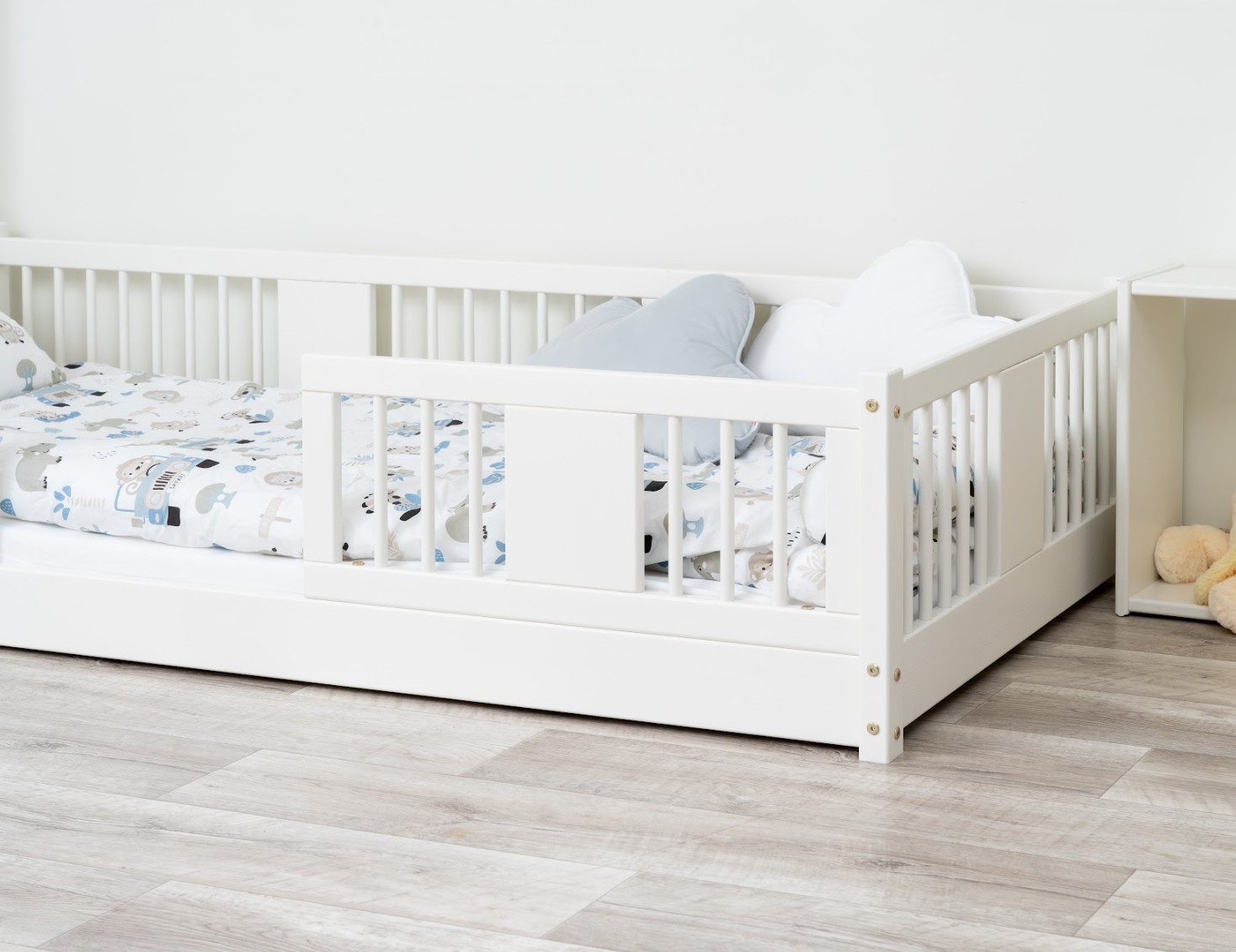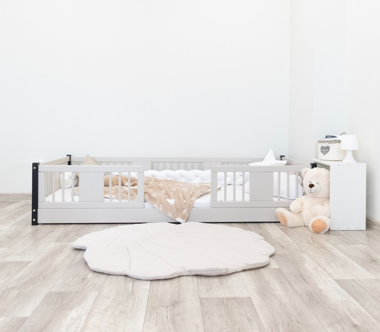 Montessori posteľ LUNA je unikátna nízka detská posteľ s guľatými latkami, navrhnutá s ohľadom na najmladších užívateľov. Vďaka výške 0 cm sa rám dotýka podlahy, čo deťom umožňuje samostatné vstávanie a lezenie z postele a bezpečne ich učia samostatnosti. Princíp Montessori kladie dôraz na voľnosť dieťaťa, čo táto posteľ ponúka. Je to perfektná voľba pre rodičov, ktorí hľadajú prvú posteľ pre svoje dieťa, kombinujúce estetiku, odolnosť a bezpečnosť v duchu štýlu Montessori. Posteľ LUNA je vyrobená výhradne z prírodného borovicového dreva pochádzajúceho z certifikovaných zdrojov. Prírodné drevo nielenže vyzerá krásne, ale je tiež úplne bezpečné - bez toxínov a pachov. Povrch postele je natretý ekologickými farbami na vodnej báze, ktoré spĺňajú prísne európske bezpečnostné normy EN 71-3. To znamená, že si môžete byť istí, že posteľ je vhodná aj pre najmenšie deti a alergikov. Posteľ ponúkame aj vo verzii bez povrchových úprav - nelakované drevo. Vďaka tomu sa dá ľahko prispôsobiť - jej vzhľad môžete upraviť morením, lakovaním alebo maľovaním podľa vlastného uváženia. Každý prvok rámu bol precízne vyleštený a hrany sú jemne zaoblené, aby bolo zaistené maximálne pohodlie a bezpečnosť. Bezpečnostné zábrany pri vstupe do postele sú odnímateľné.