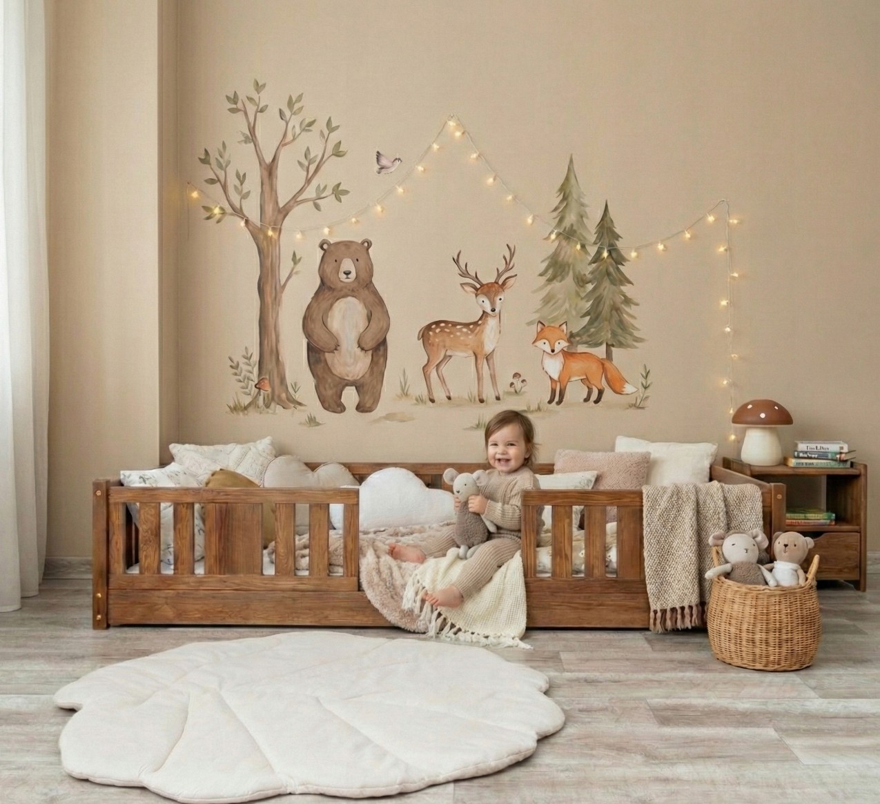 Montessori posteľ NIKO je unikátna nízka detská posteľ so zvislými lamelami, navrhnutá s ohľadom na najmladších užívateľov. Vďaka výnimočne nízkemu dizajnu – s nohou vysokou 0 cm – je matrac blízko podlahy. To umožňuje vášmu dieťaťu ľahko vstávať z postele bez pomoci dospelej osoby a učiť sa samostatnosti a sebestačnosti od prvých dní spánku vo vlastnej izbe. Princíp Montessori kladie dôraz na voľnosť dieťaťa, čo táto posteľ ponúka. Tento kus nábytku kombinuje škandinávsku jednoduchosť, prírodné materiály a bezpečnosť – tri vlastnosti, ktoré ocení každý rodič. Posteľ NIKO je vyrobená výhradne z prírodného borovicového dreva o sile 2,2 cm pochádzajúceho z certifikovaných zdrojov. Prírodné drevo nielenže vyzerá krásne, ale je tiež úplne bezpečné - bez toxínov a pachov. Povrch postele je natretý ekologickými farbami na vodnej báze, ktoré spĺňajú prísne európske bezpečnostné normy EN 71-3. To znamená, že si môžete byť istí, že posteľ je vhodná aj pre najmenšie deti a alergikov. Posteľ ponúkame aj vo verzii bez povrchových úprav - nelakované drevo. Vďaka tomu sa dá ľahko prispôsobiť - jej vzhľad môžete upraviť morením, lakovaním alebo maľovaním podľa vlastného uváženia. Každý prvok rámu bol precízne vyleštený a hrany sú jemne zaoblené, aby bolo zaistené maximálne pohodlie a bezpečnosť. Bezpečnostné zábrany pri vstupe do postele sú odnímateľné.