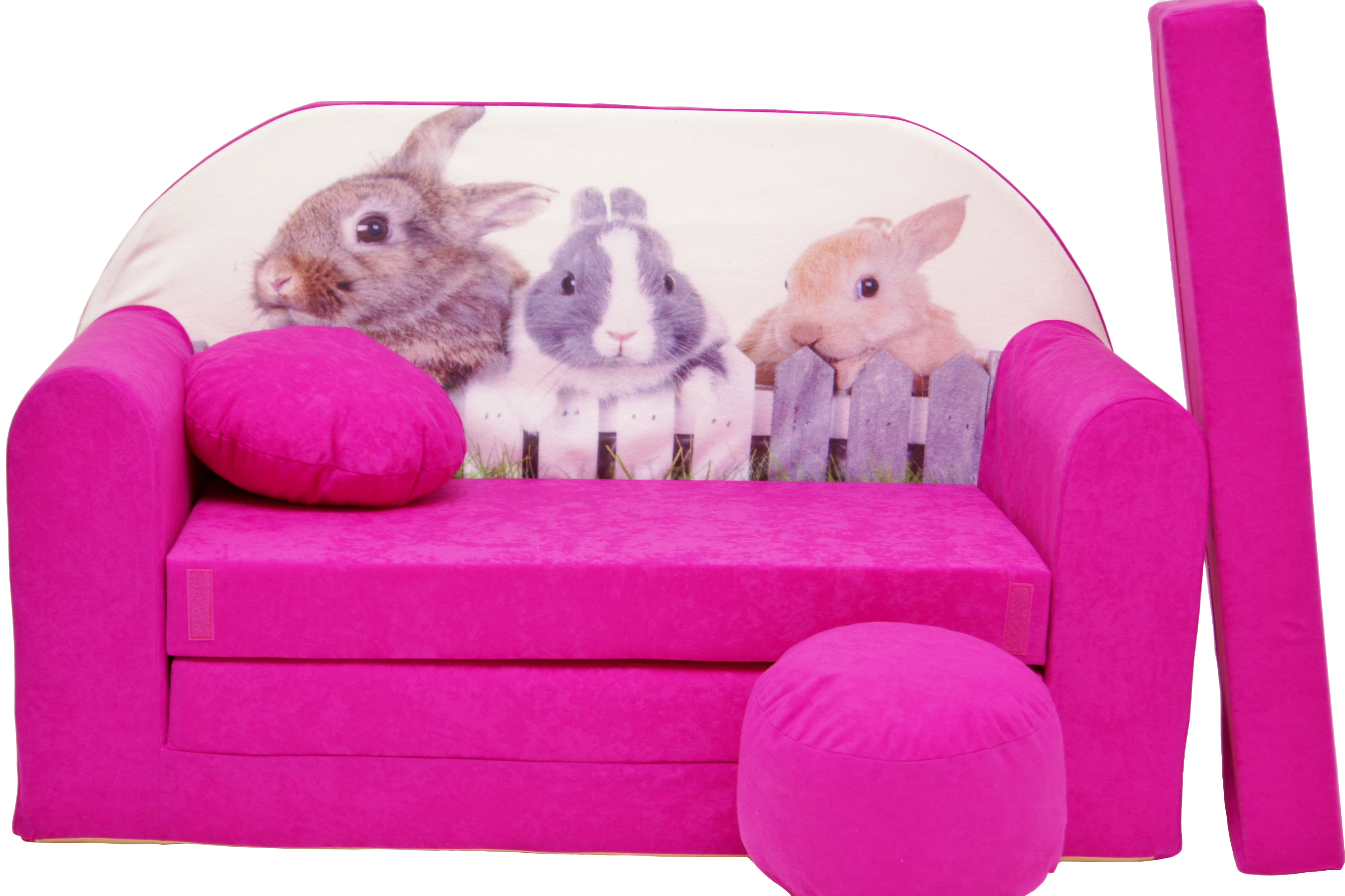 Rozkladacia detská pohovka s vankúšikom a Bobkom zadarmo. Môže slúžiť na spanie, odpočívanie, hranie, kreslenie alebo len na pozeranie na televíziu. Veselé farby a moderný tvar dodajú detskému izbičke tú správnu atmosféru. Sedačka je veľmi pohodlná a ľahko rozložiteľná, neobsahuje žiadne tvrdé prvky, na ktorých by sa mohlo dieťa zraniť. Vyrobená je z molitanové peny, dieťa s ňou teda dokáže ľahko manipulovať samo. Zároveň je pohovka vďaka pevnému operadlu stabilné a dieťa sa môže bez obáv oprieť. Na výrobu pohoviek boli použité veľmi kvalitné certifikované materiály. Poťah je z kvalitnej bavlny, je odnímateľnú, môžete ho teda pohodlne vyprať pri teplote 30 ° C. V cene pohovky je vankúšik, bobek a štvrtý dopínací sedák, ktorý využijete pri rozložení gauča alebo pre vyvýšenie sedenie.