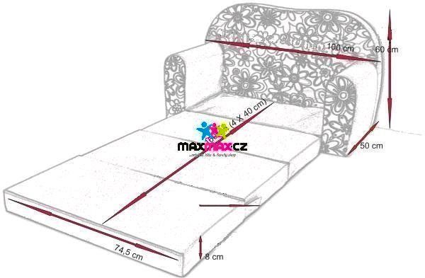 Rozmery zloženej pohovky: šírka 100cm, výška 60cm, hĺbka 50cm