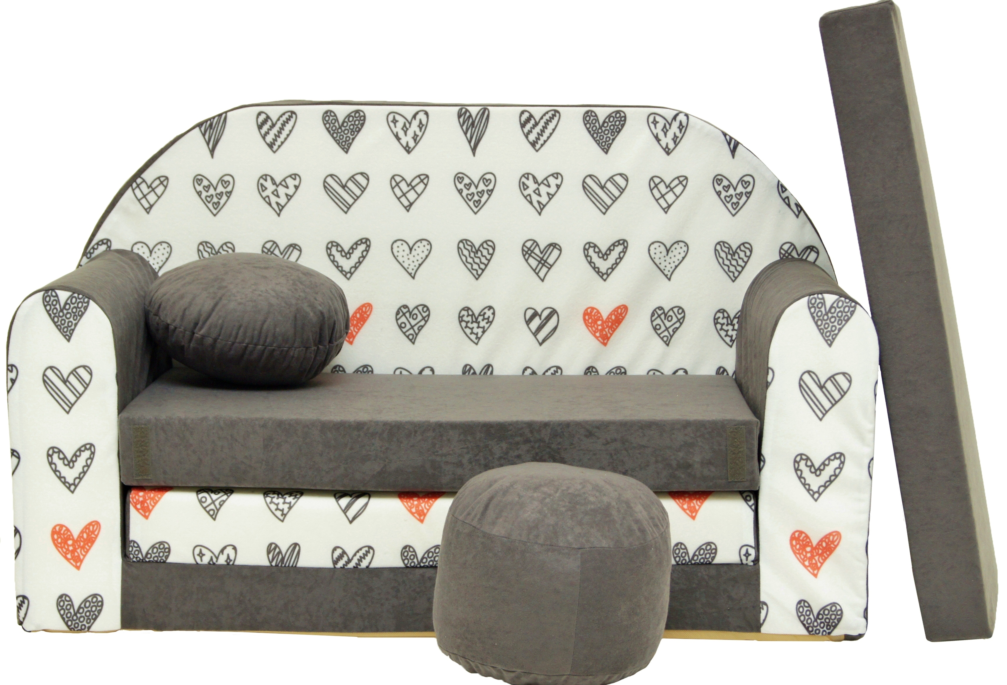 Rozkladacia detská pohovka s vankúšikom a Bobkom zadarmo. Môže slúžiť na spanie, odpočívanie, hranie, kreslenie alebo len na pozeranie na televíziu. Veselé farby a moderný tvar dodajú detskému izbičke tú správnu atmosféru. Sedačka je veľmi pohodlná a ľahko rozložiteľná, neobsahuje žiadne tvrdé prvky, na ktorých by sa mohlo dieťa zraniť. Vyrobená je z molitanové peny, dieťa s ňou teda dokáže ľahko manipulovať samo. Zároveň je pohovka vďaka pevnému operadlu stabilné a dieťa sa môže bez obáv oprieť. Na výrobu pohoviek boli použité veľmi kvalitné certifikované materiály. Poťah je z kvalitnej bavlny, je odnímateľnú, môžete ho teda pohodlne vyprať pri teplote 30 ° C. V cene pohovky je vankúšik, bobek a štvrtý dopínací sedák, ktorý využijete pri rozložení gauča alebo pre vyvýšenie sedenie.