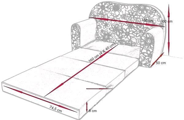 Rozmery zložené pohovky: šírka 98 cm, výška 59 cm, hĺbka 48 cm