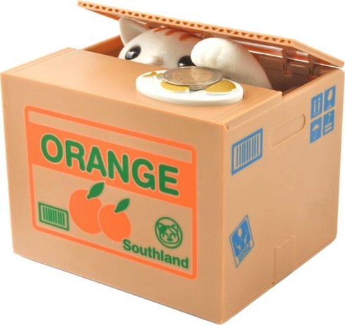 Pohyblivá pokladnička je skvelým spôsobom, ako naučiť dieťa šetriť peniaze. Akonáhle dieťa položí mincu na určené miesto, mačička ju "ukradne", radostne zamňauká a schová sa. V spodnej časti je otvor, ktorým môžete nazhromaždené mince vybrať.