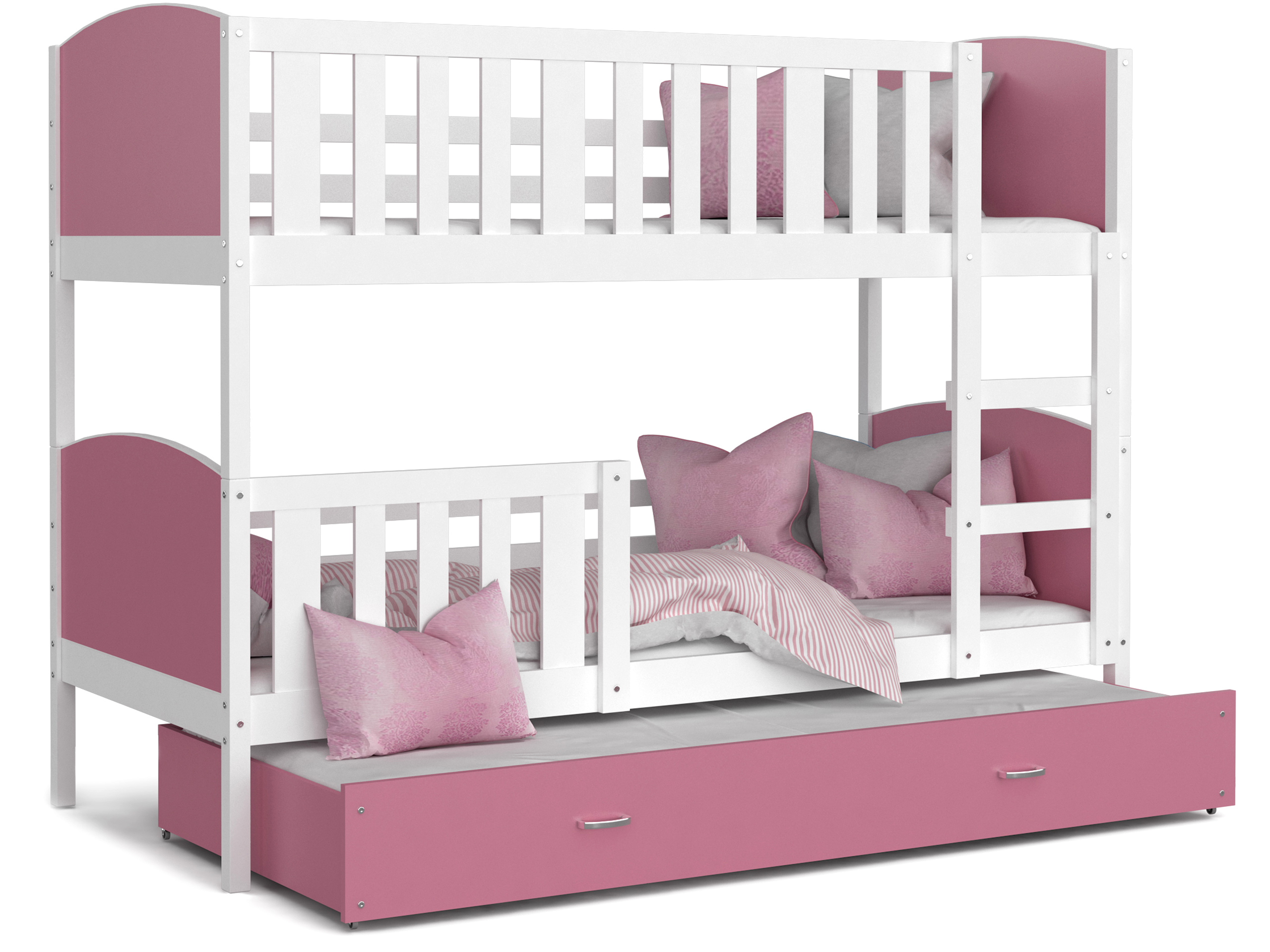 Detská poschodová posteľ s prístelkou TAMI Q - 190x80 cm - ružovo-biela