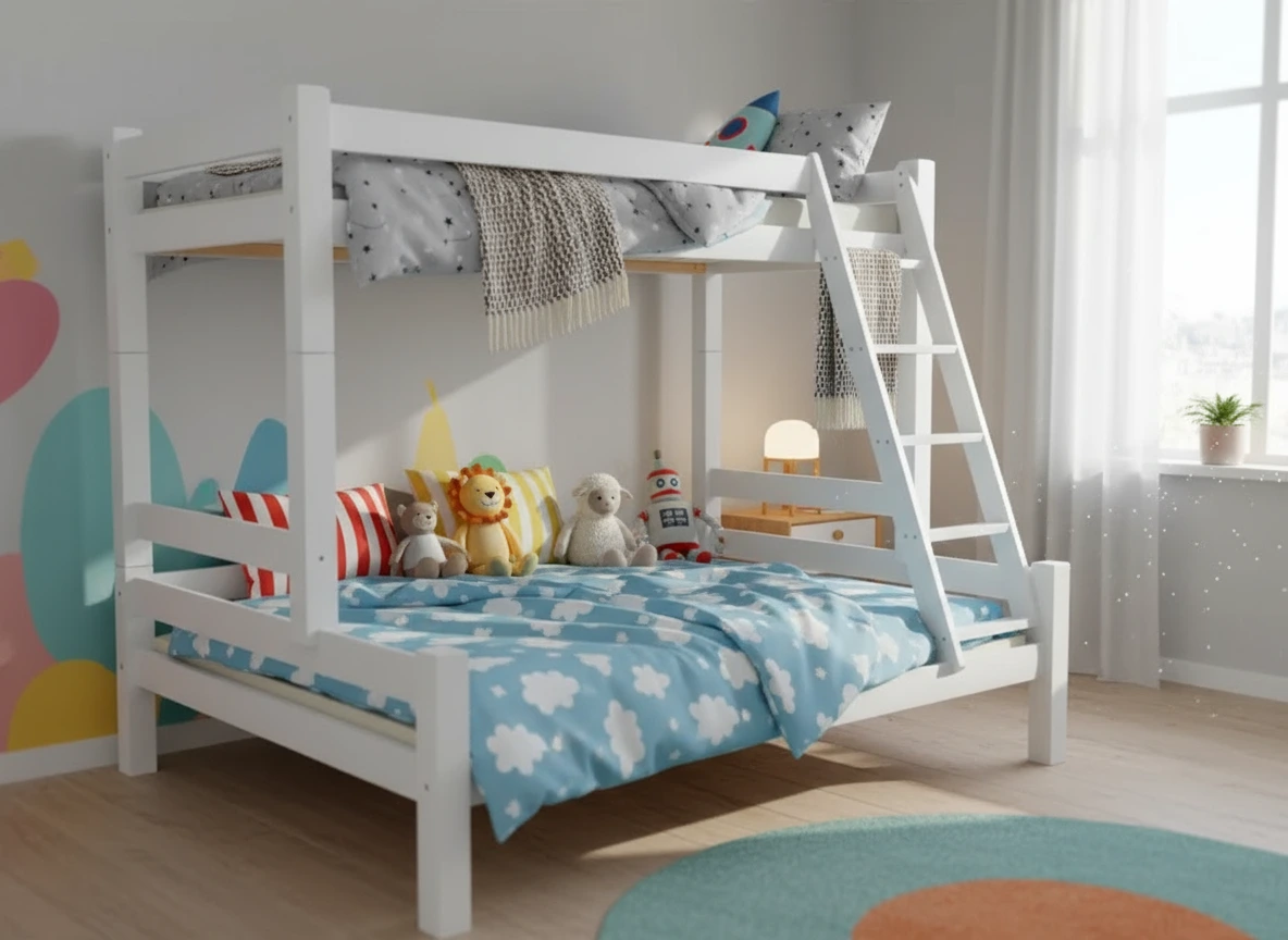 Toto trojlôžko je vysoko kvalitné a stabilné. Všetok materiál je ekologický a šetrný k životnému prostrediu. Farby a laky spĺňajú všetky stanovené normy o nezávadnosti. Moderný design postele je vhodný do akéhokoľvek interiéru. Rebrík si môžete na posteľ namontovať z ľavej alebo pravej strany.