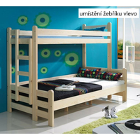 Stabilná poschodová posteľ poskytuje dostatok miesta na spánok a odpočinok vašich detí. Súčasťou postele je rebrík , ktorý umožňuje ľahký prístup k hornému lôžku. Stranu rebríka je možné voliť z ľavej alebo pravej strany čela. Posteľ je dodávaná s dvoma výsuvnými zásuvkami na kolieskach, ktoré môžu slúžiť na ukladanie lôžkovín. Čelá zásuviek sú vyrobené z masívneho dreva, bočnice sú laminátové.