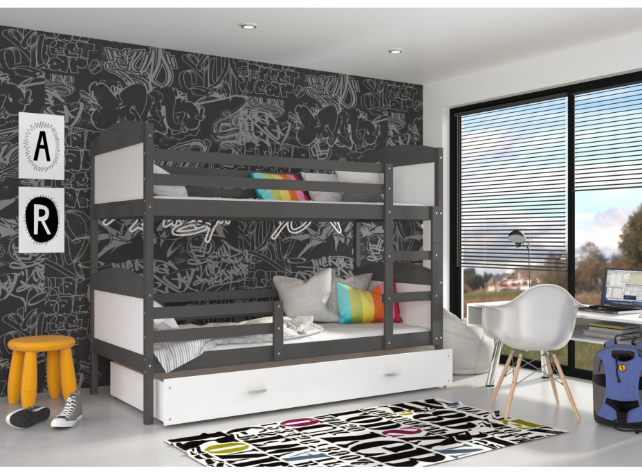 Detská poschodová posteľ so zásuvkou MATTEO - 190x80 cm - bielo-šedá
