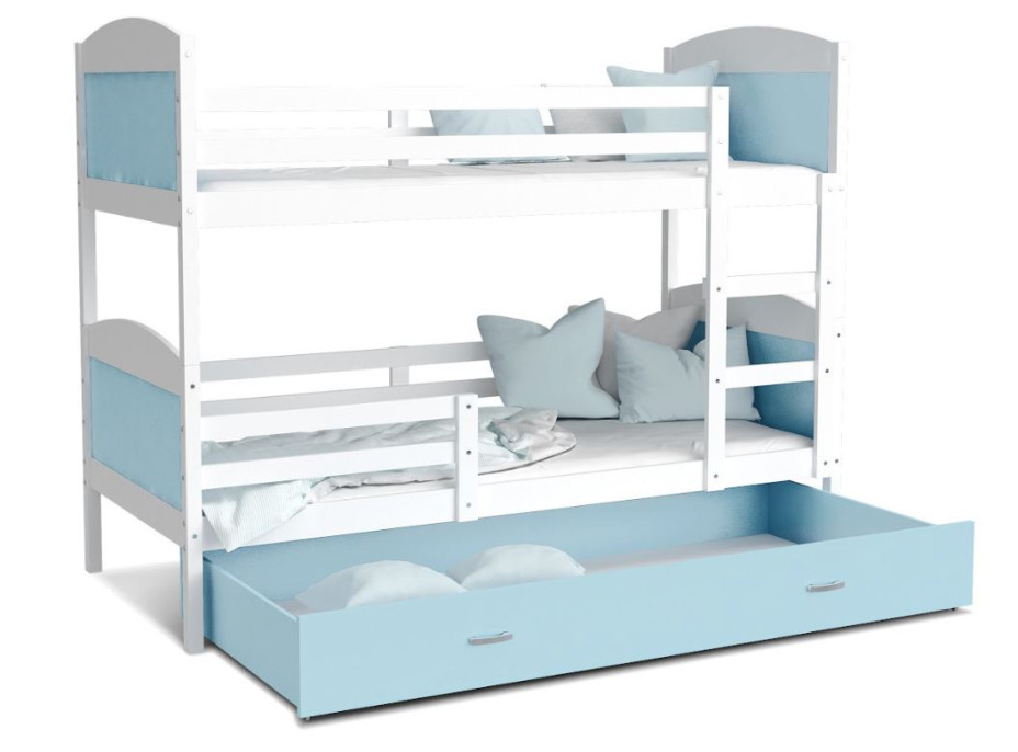 Detská poschodová posteľ so zásuvkou MATTEO - 200x90 cm - modro-biela