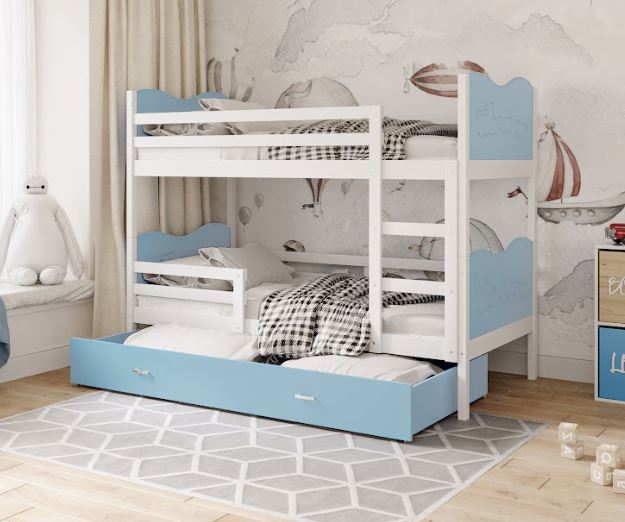 Detská poschodová posteľ so zásuvkou MAX R - 190x80 cm - modro-biela - vláčik