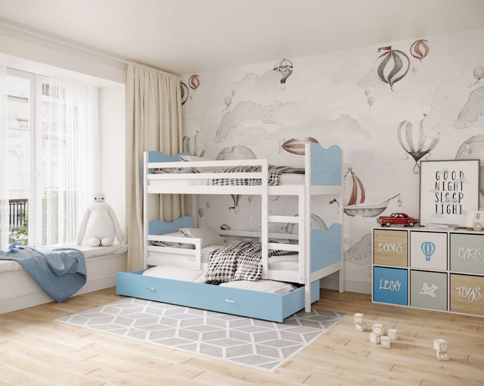 Detská poschodová posteľ so zásuvkou MAX R - 200x90 cm - modro-biela - vláčik
