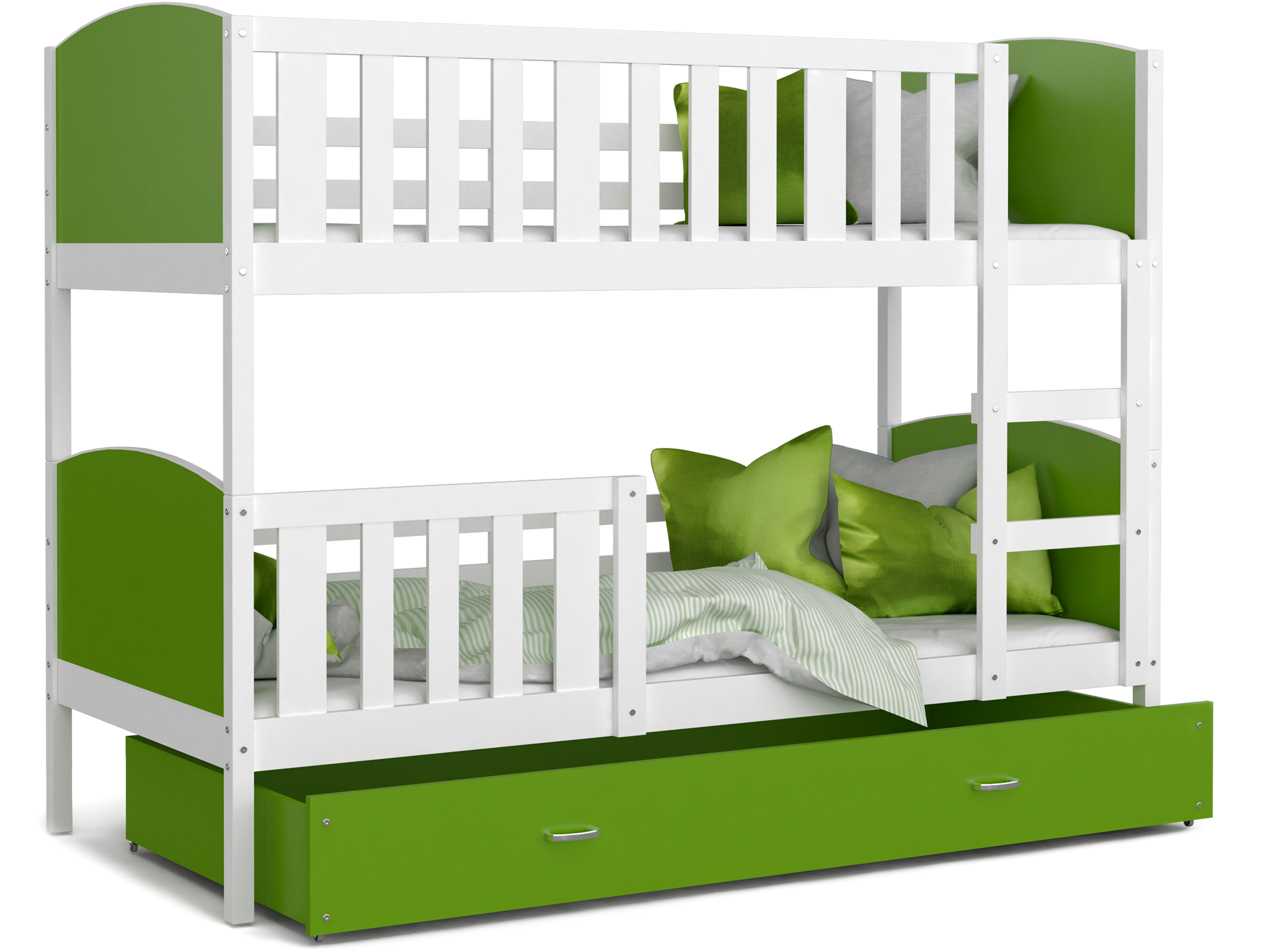 Detská poschodová posteľ so zásuvkou TAMI Q - 200x90 cm - zeleno-biela