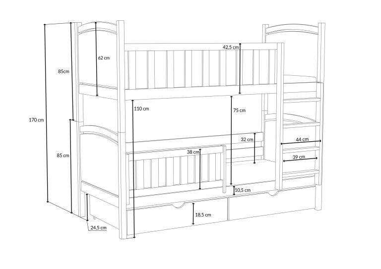 Poschodová posteľ Bartolomej z borovicového dreva bola navrhnutá tak, aby deťom poskytla nielen dobrý a zdravý spánok, ale aj veľa detskej radosti. U bočníc a čiel je šírka použitého materiálu 2,6 cm . Bartolomej je posteľ charakteristická pevnou, stabilnou a odolnou konštrukciou, ktorá používateľom zaručuje zdravý a pokojný spánok. Drevené prvky sú pokryté zdravotne nezávadným lakom na vodnej báze, ktorý nespôsobuje alergické reakcie ani zdravotné problémy. Posteľ má bezpečnostné zábrany s priečkami na ochranu detí pred pádom a široký rebrík , ktorý umožňuje ľahký prístup do hornej časti postele. Zaoblené čelá postele majú biele dosky stierateľné za sucha, ktoré deti môžu ozdobiť svojimi vlastnými obrázkami a vyzdobiť si tak posteľ podľa svojich predstáv. Súčasťou postele sú aj kvalitné rošty . Spodné lôžko je doplnené o ochrannú bariérku s možnosťou univerzálnej montáže na pravú aj ľavú stranu. Bariérku je možné tiež úplne odstrániť, akonáhle ju dieťa už nepotrebuje.