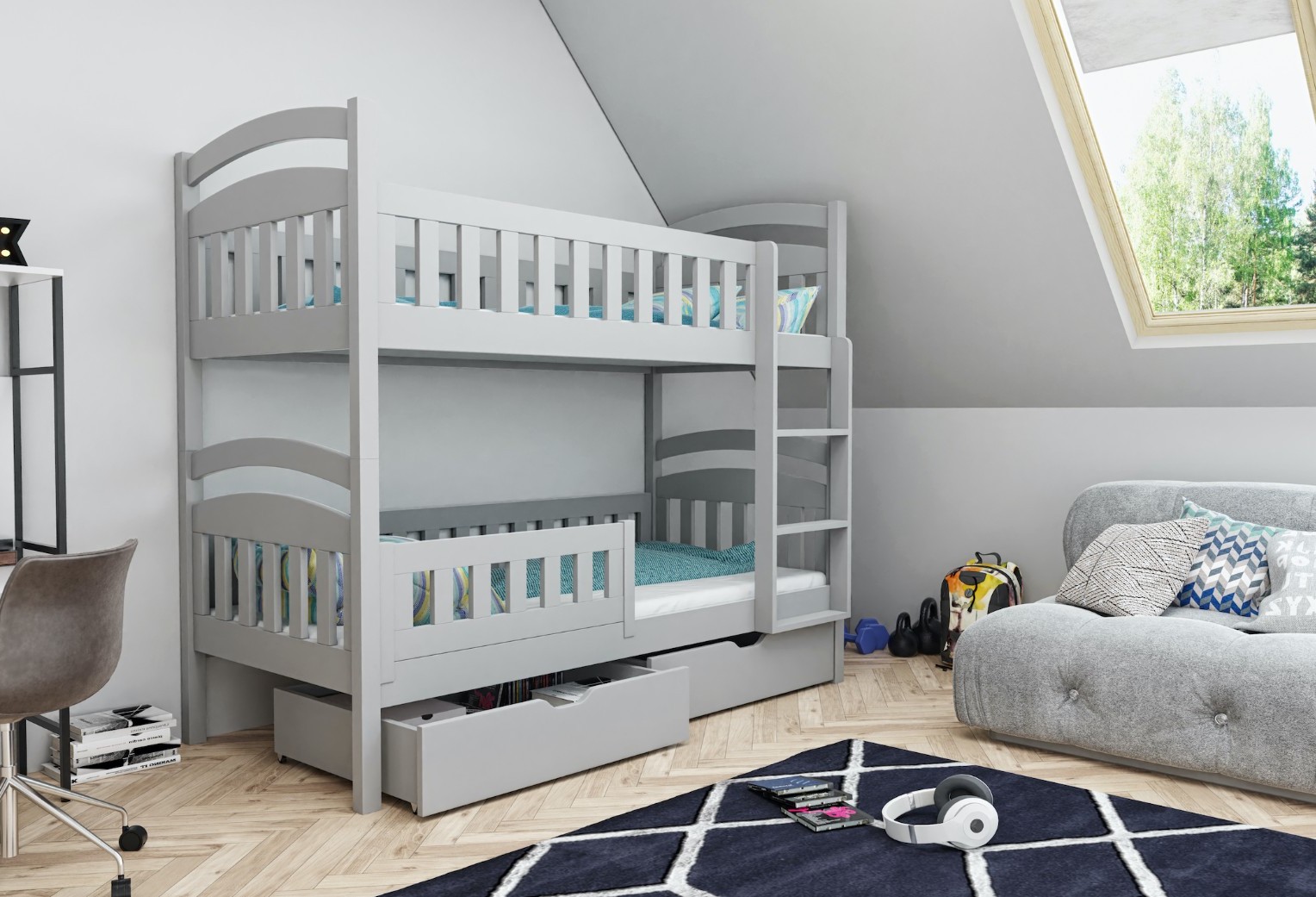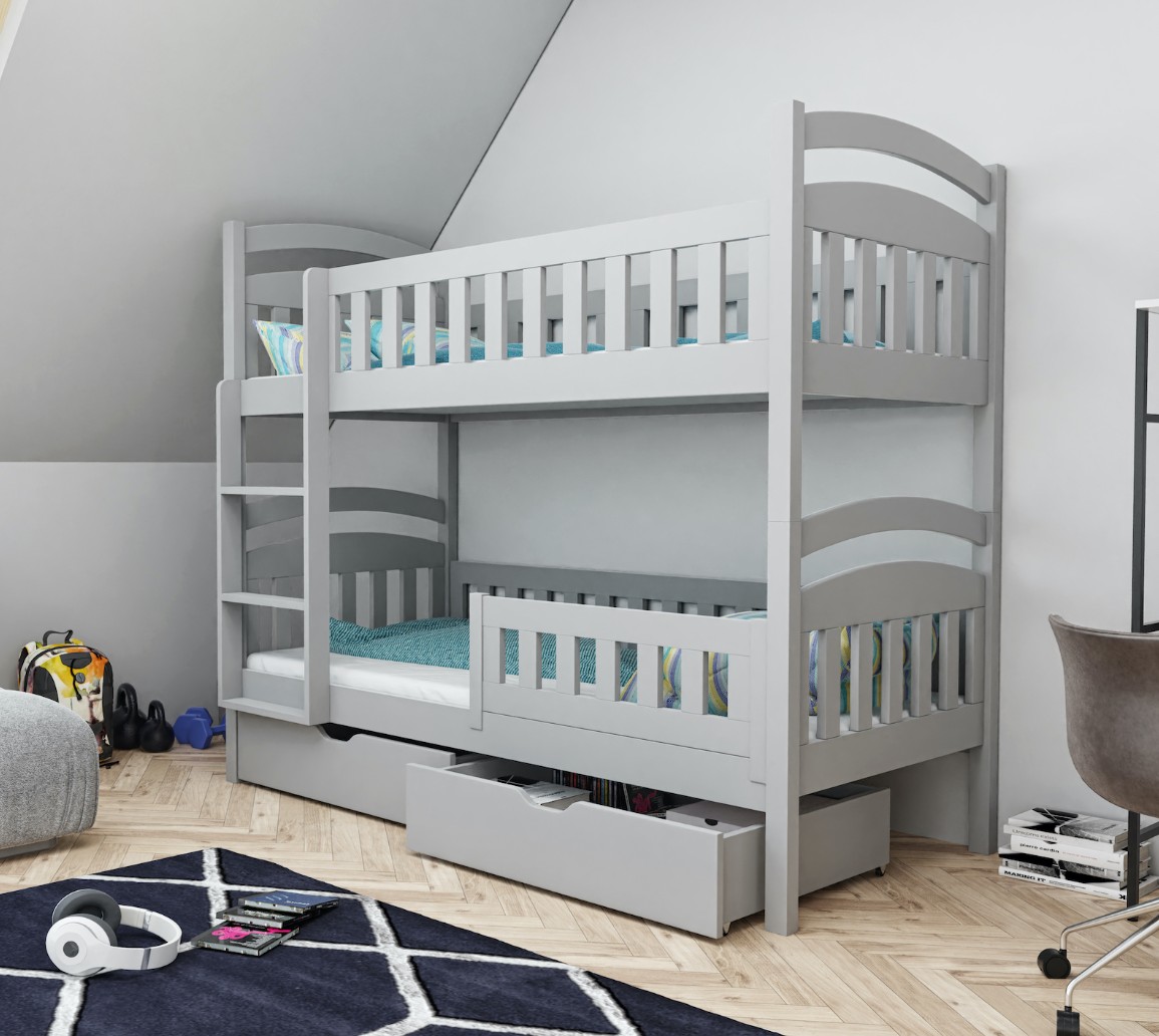 Detská poschodová posteľ z masívu borovice DOMINIK II so šuplíkmi - 200x90 cm - šedá