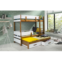 Detská poschodová posteľ z masívu borovice ETTORE III s prístelkou a zásuvkami - 200x90 cm - dub/biela