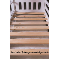 - Hrúbka lát: 2 cm - nohy postele sú vyrobené z robustných hranolov s rozmermi 4x4 cm
