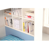Moderný vzhľad postele GASPAR predurčuje tento model predovšetkým mladým ľuďom. Vďaka jednoduchému tvaru sa perfektne hodí do každého moderného interiéru. Táto posteľ je vyrobená z kombinácie borovicového dreva a laminovanej dosky. Konštrukčné prvky ako nohy, rebrík a bočnice na strane rebríka sú vyrobené zo starostlivo vybraného borovicového dreva. Táto posteľ sa vyznačuje nielen moderným dizajnom, ale aj svojou funkčnosťou vďaka zakomponovaniu políc do konštrukcie postele. Toto riešenie umožnilo získať veľmi odolnú a praktickú konštrukciu a mnoho úložných priestorov pre knihy, ktoré tak budete mať stále po ruke. Posteľ je odolná proti poškriabaniu a to vďaka trom vrstvám ekologického laku. Lak je bez zápachu a vyznačuje sa vynikajúcou svetlostálosťou. K posteli dodávame dva samostatné menšie priestranné šuplíky s gumovými kolieskami , kde môžete uložiť lôžkoviny alebo hračky všetkého druhu.