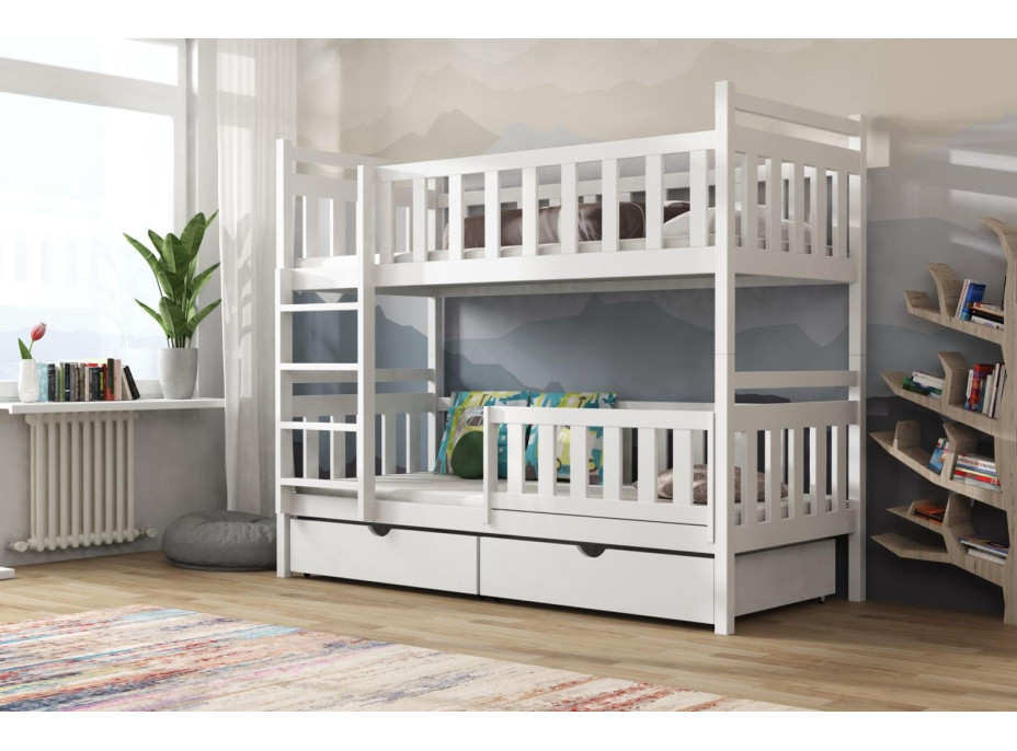 Detská poschodová posteľ z masívu borovice KAREL so šuplíkmi - 190x90 cm - BIELA