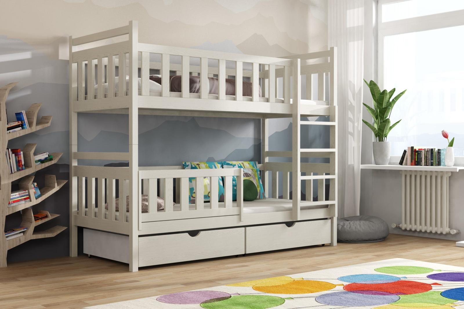 Detská poschodová posteľ z masívu borovice KAREL so šuplíkmi - 190x90 cm - KAŠMÍROVÁ