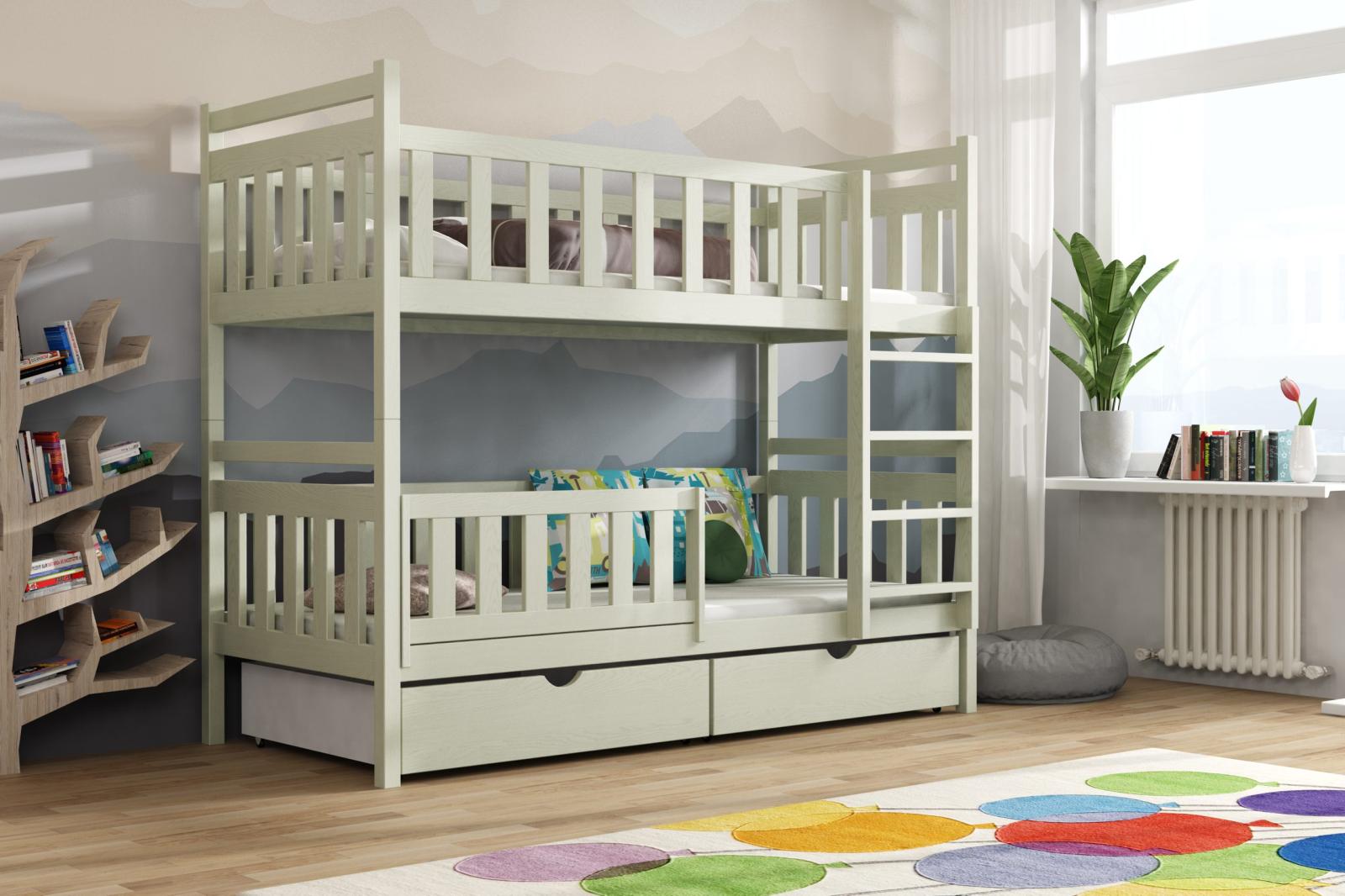 Detská poschodová posteľ z masívu borovice KAREL so šuplíkmi - 190x90 cm - OLIVOVO ZELENÁ