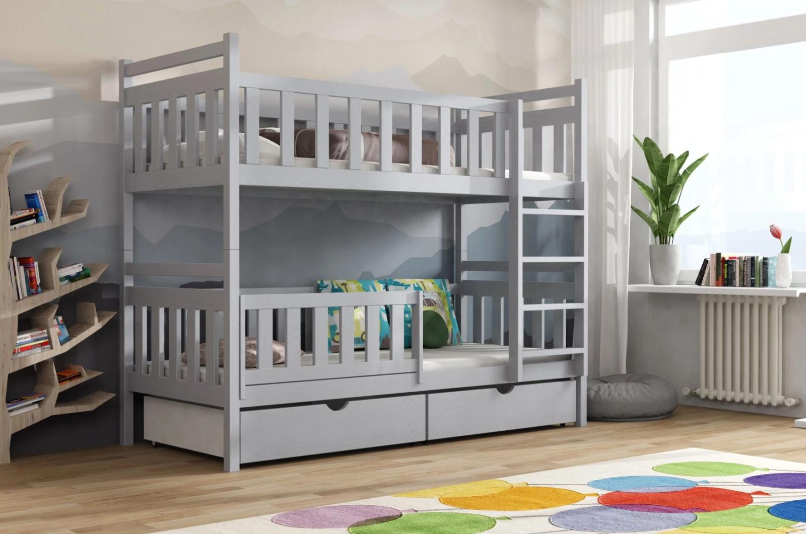 Detská poschodová posteľ z masívu borovice KAREL so šuplíkmi - 200x90 cm - ŠEDÁ