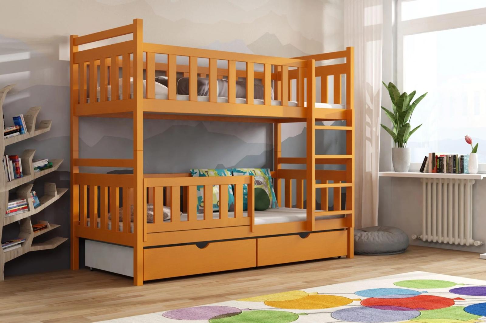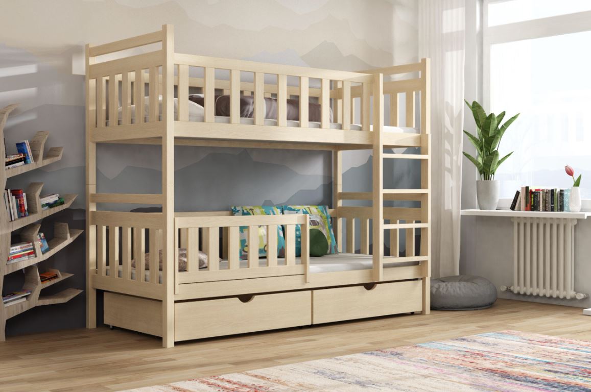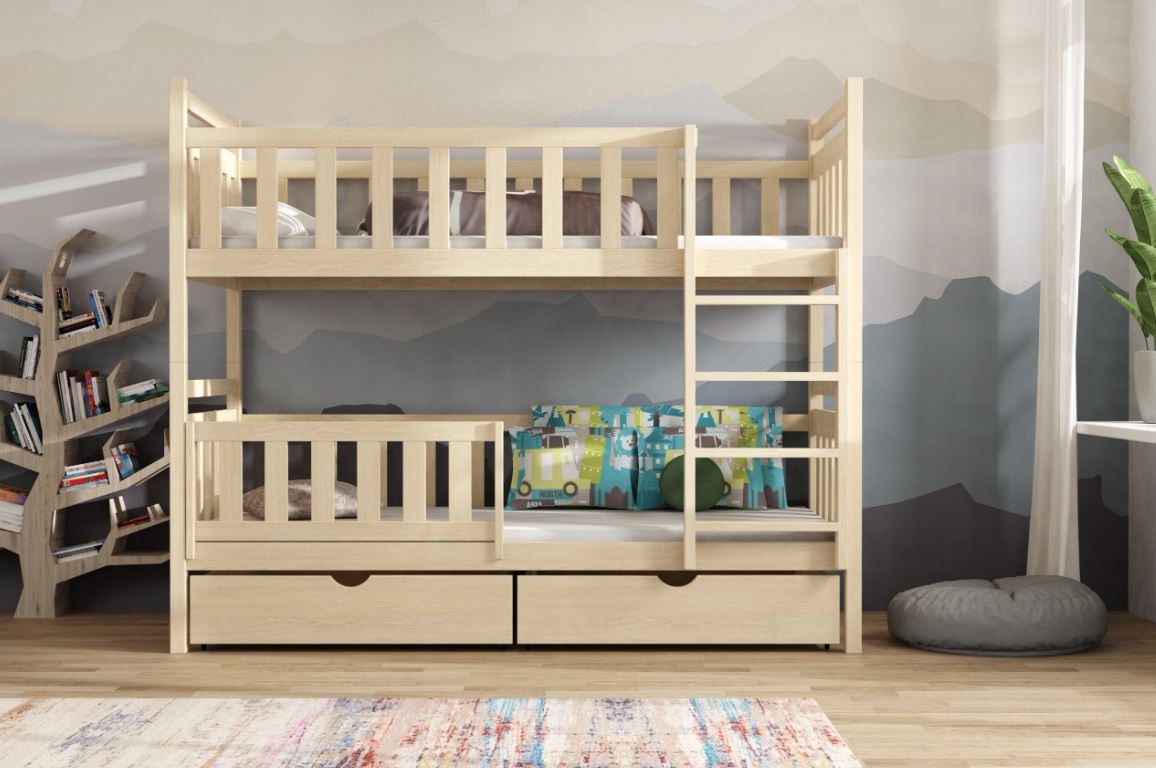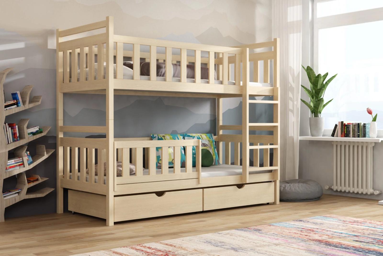 Detská poschodová posteľ z masívu borovice KAREL so šuplíkmi - 200x90 cm