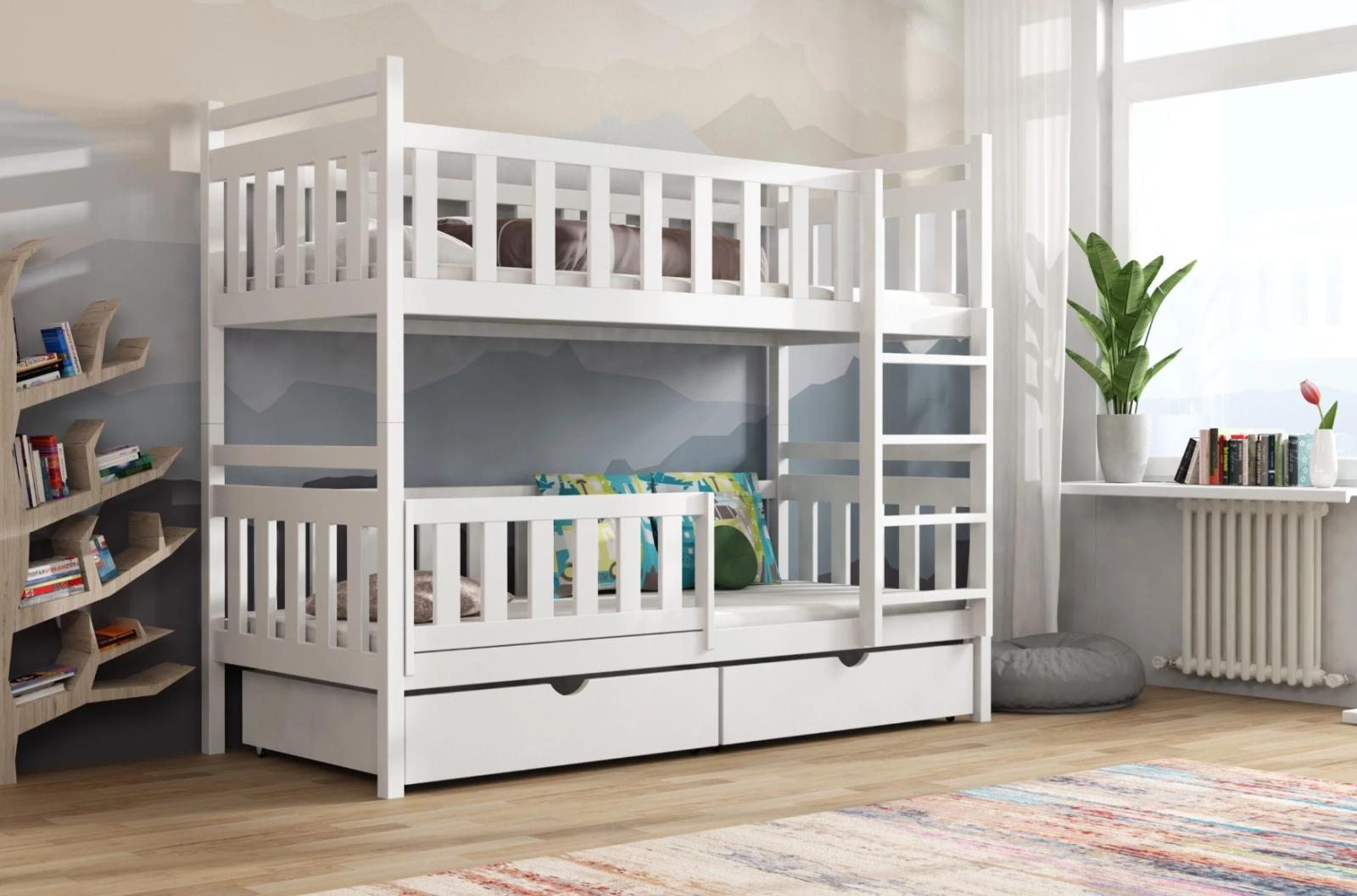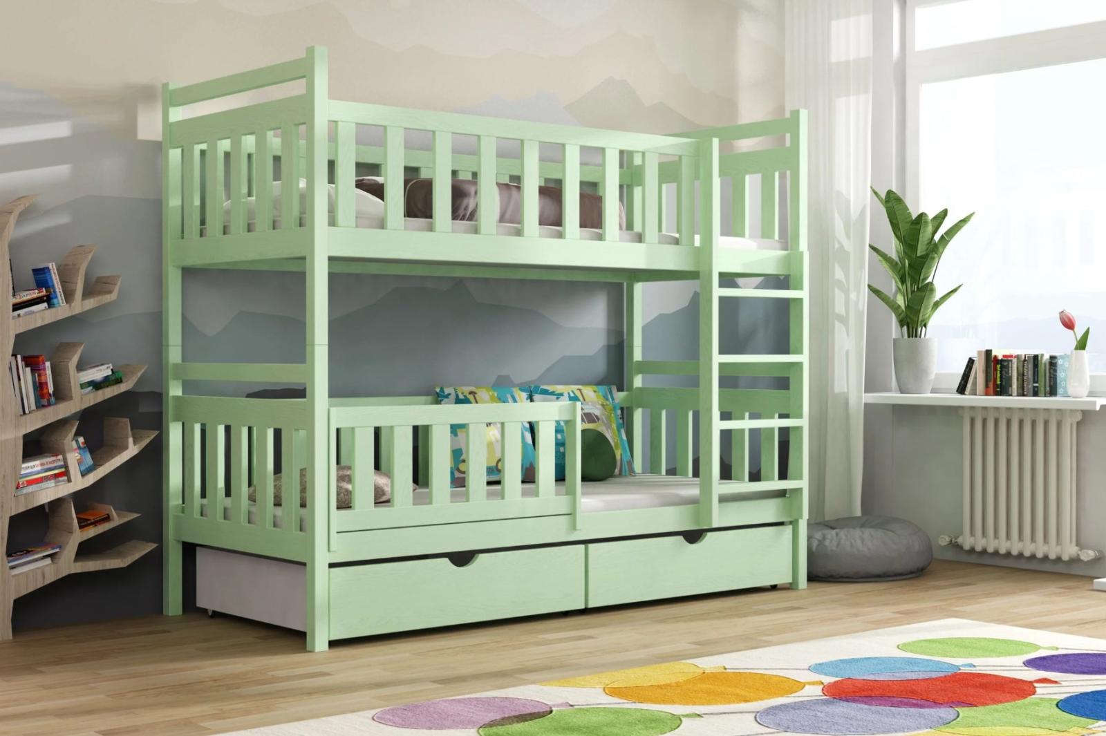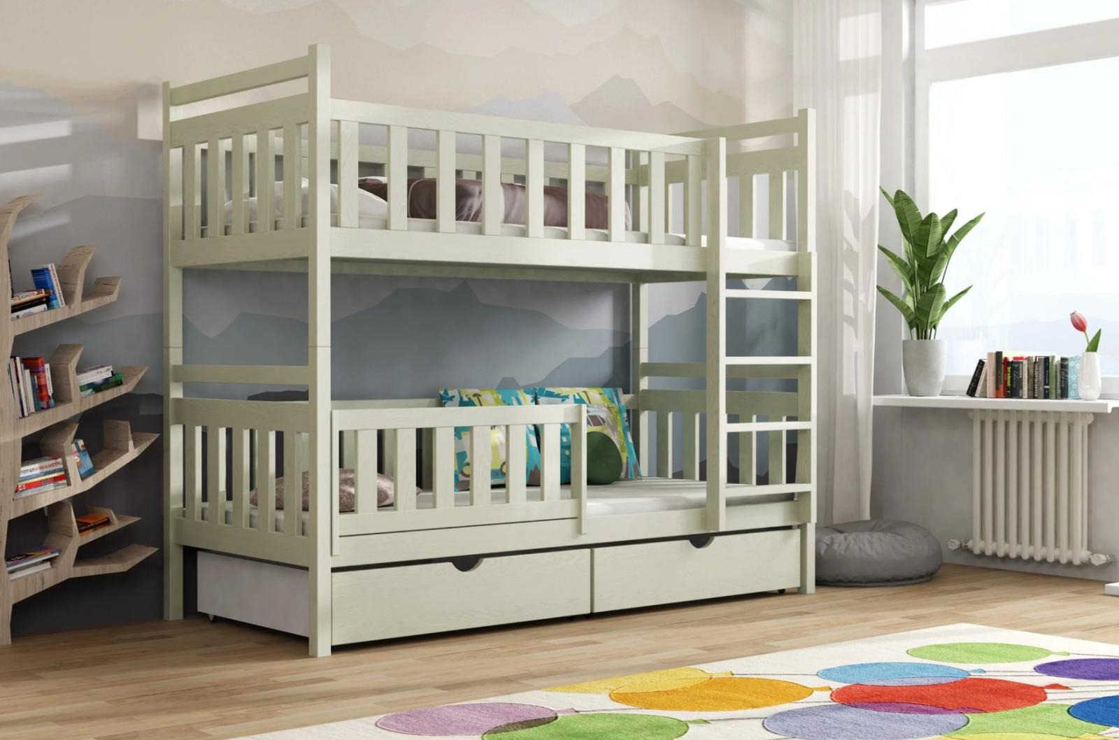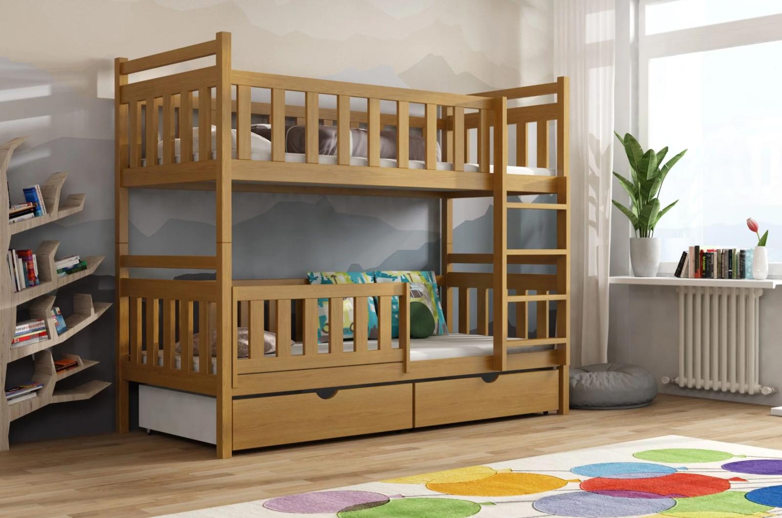 Detská poschodová posteľ z masívu borovice KAREL so šuplíkmi - 200x90 cm