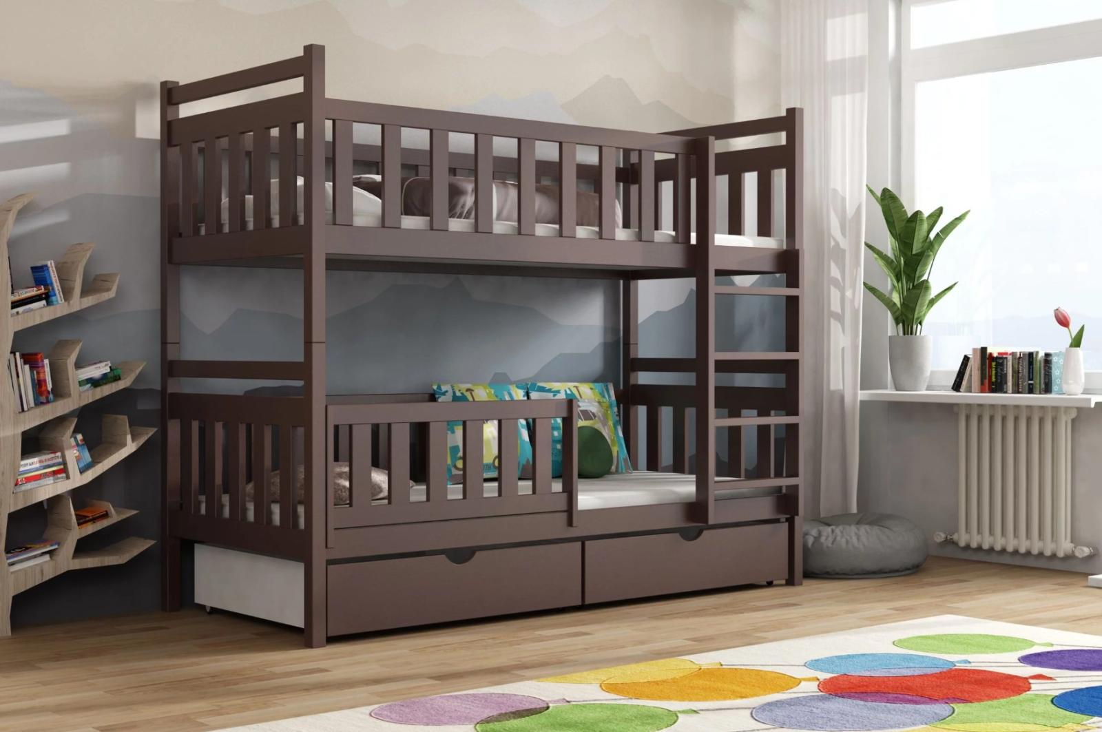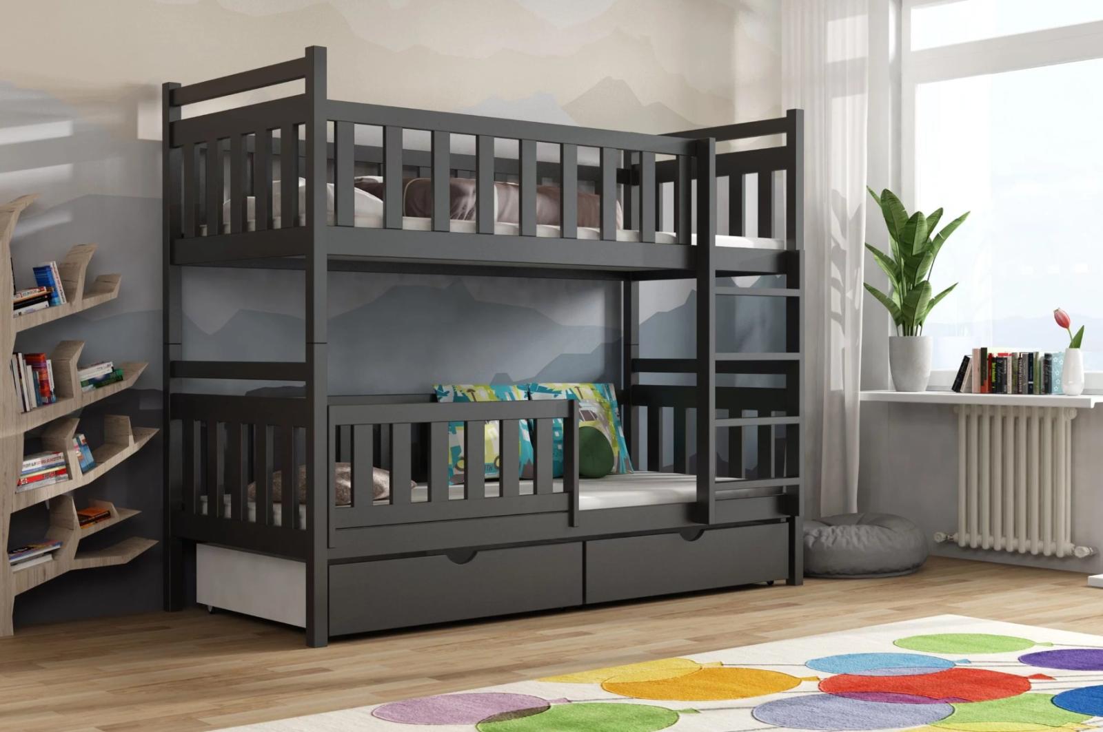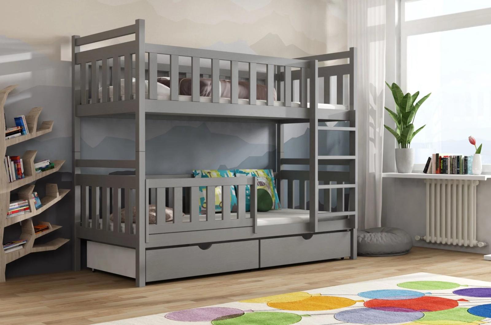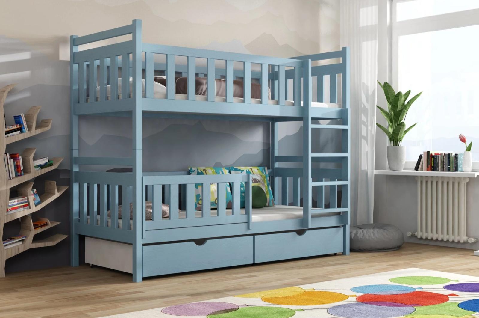Detská poschodová posteľ z masívu borovice KAREL so šuplíkmi - 200x90 cm