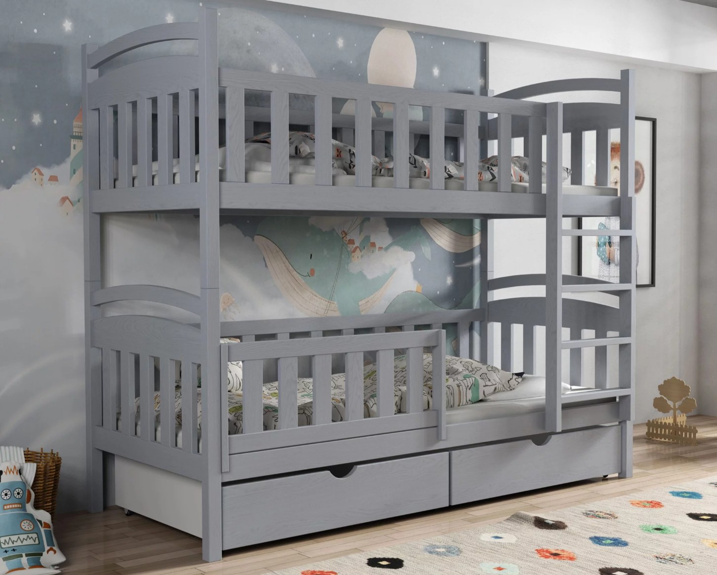 Detská poschodová posteľ z masívu borovice KRISTEN so šuplíkmi - 200x90 cm - ŠEDÁ