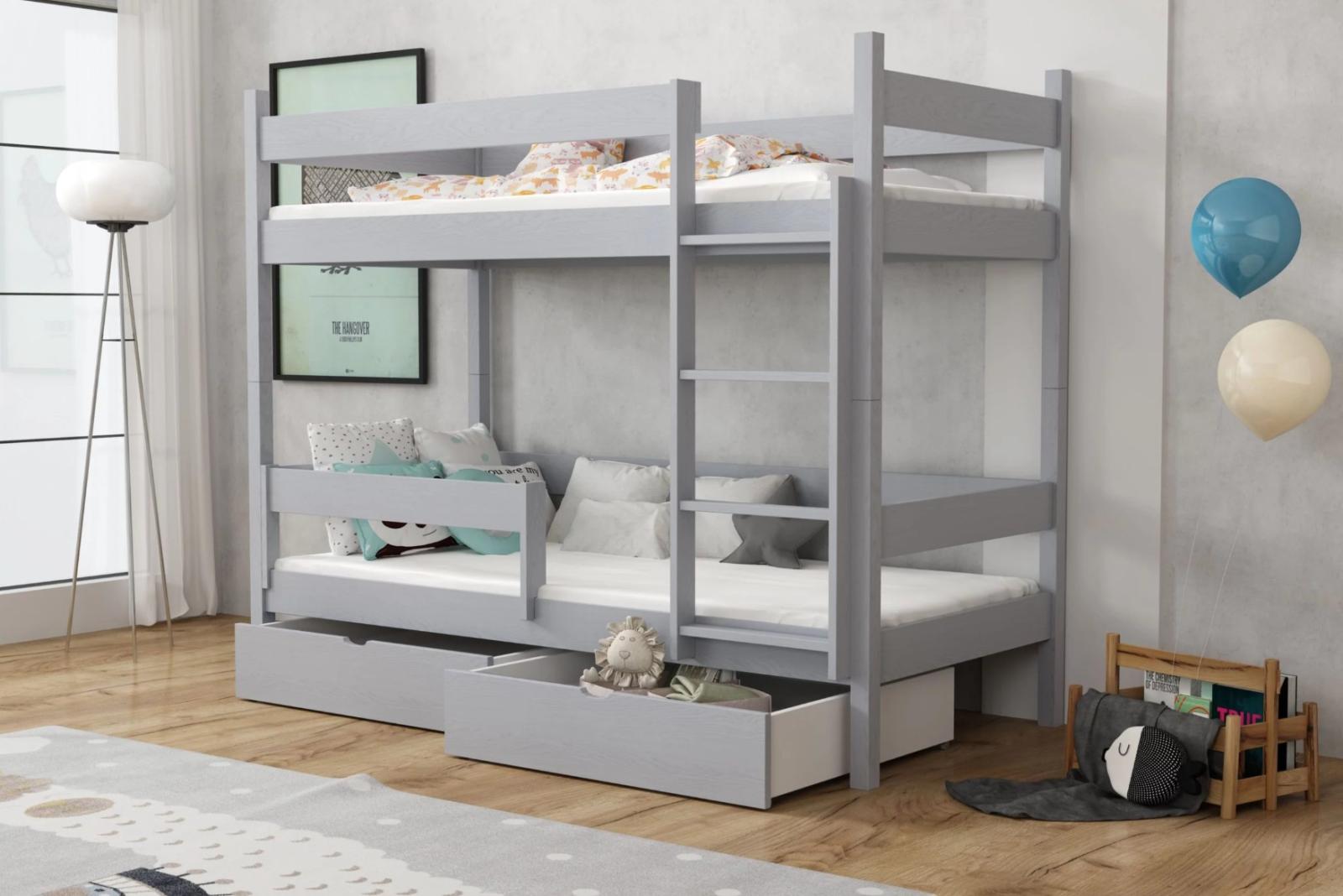 Detská poschodová posteľ z masívu borovice LEGEND so šuplíkmi - 200x90 cm - ŠEDÁ