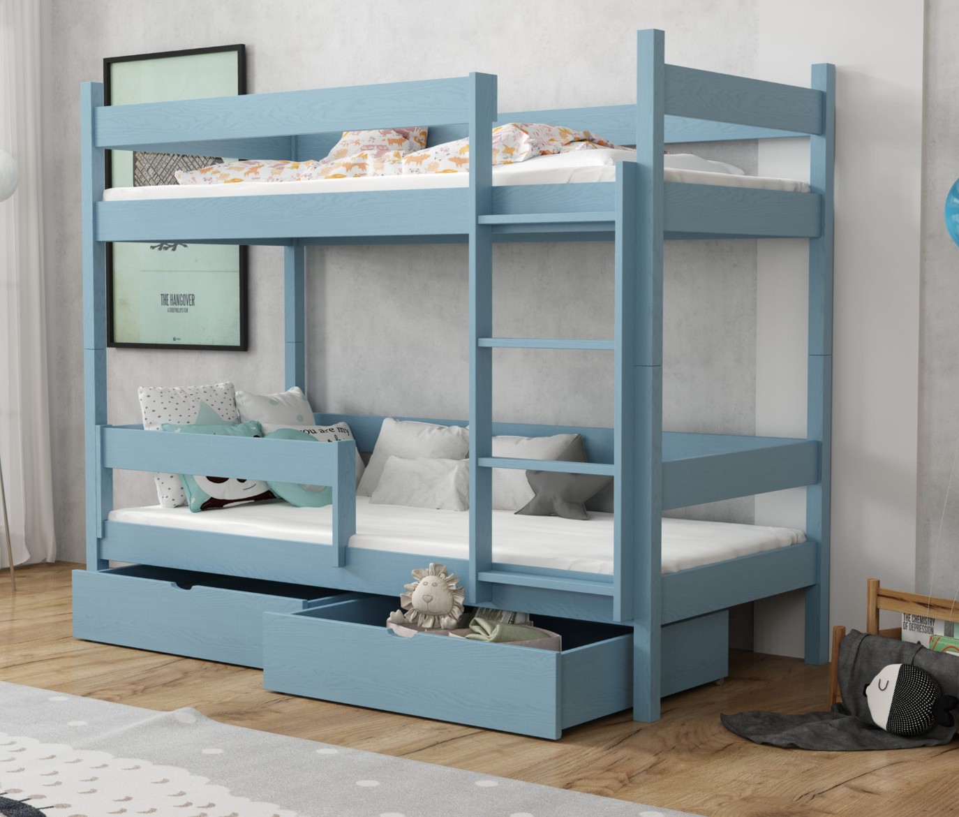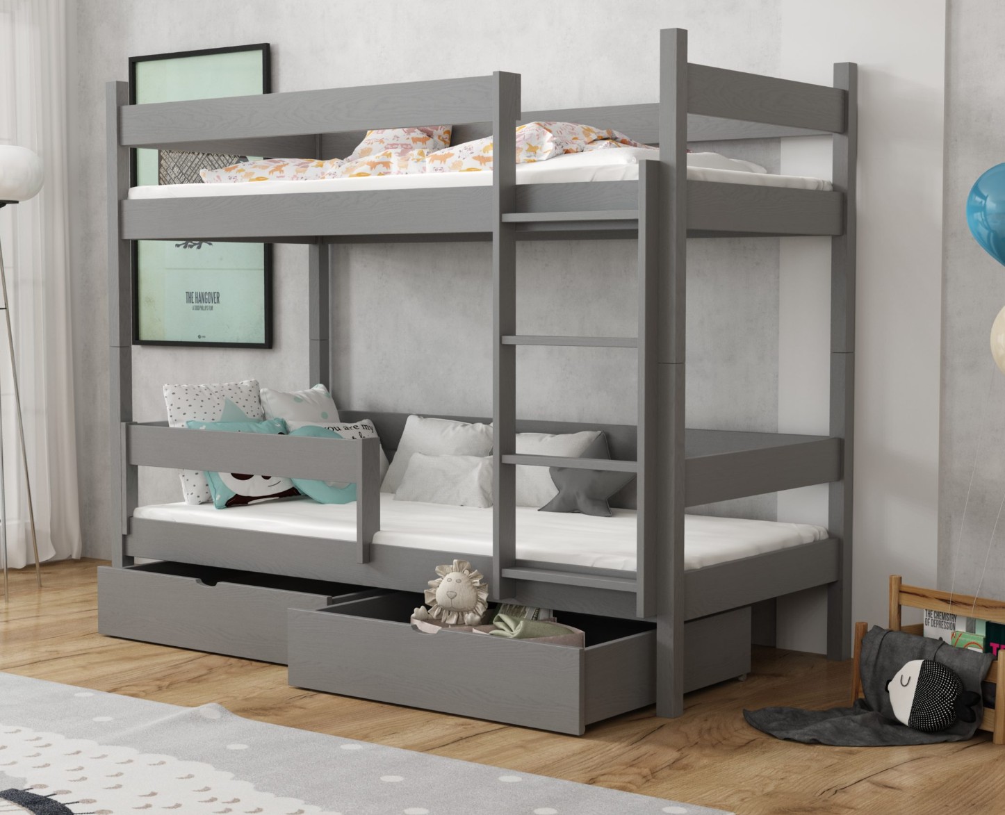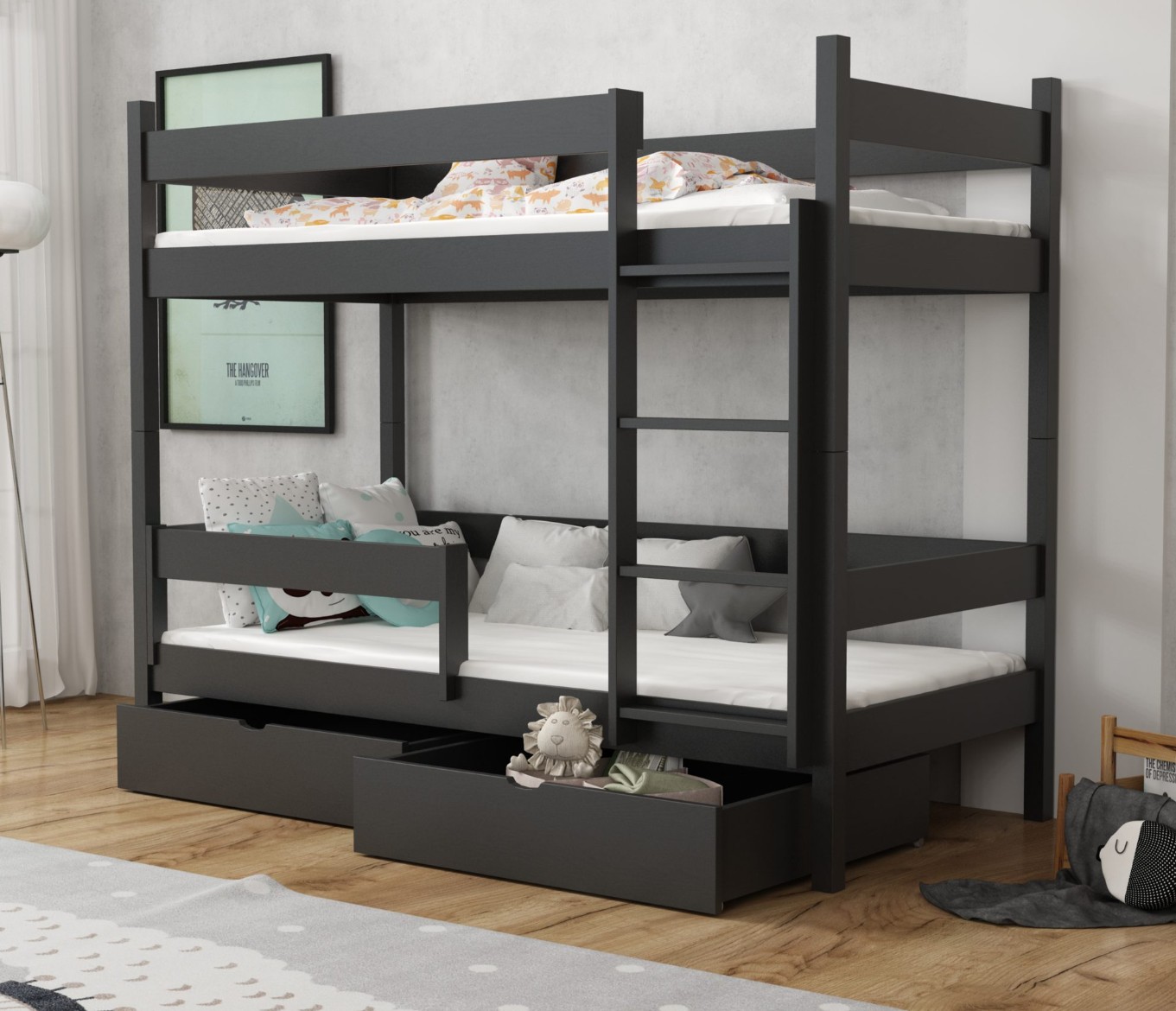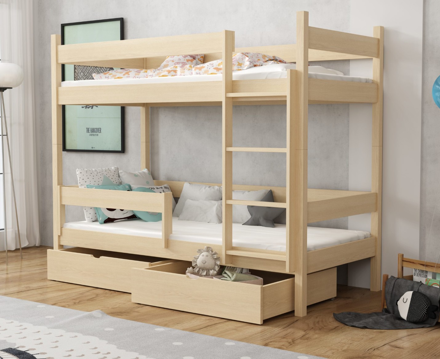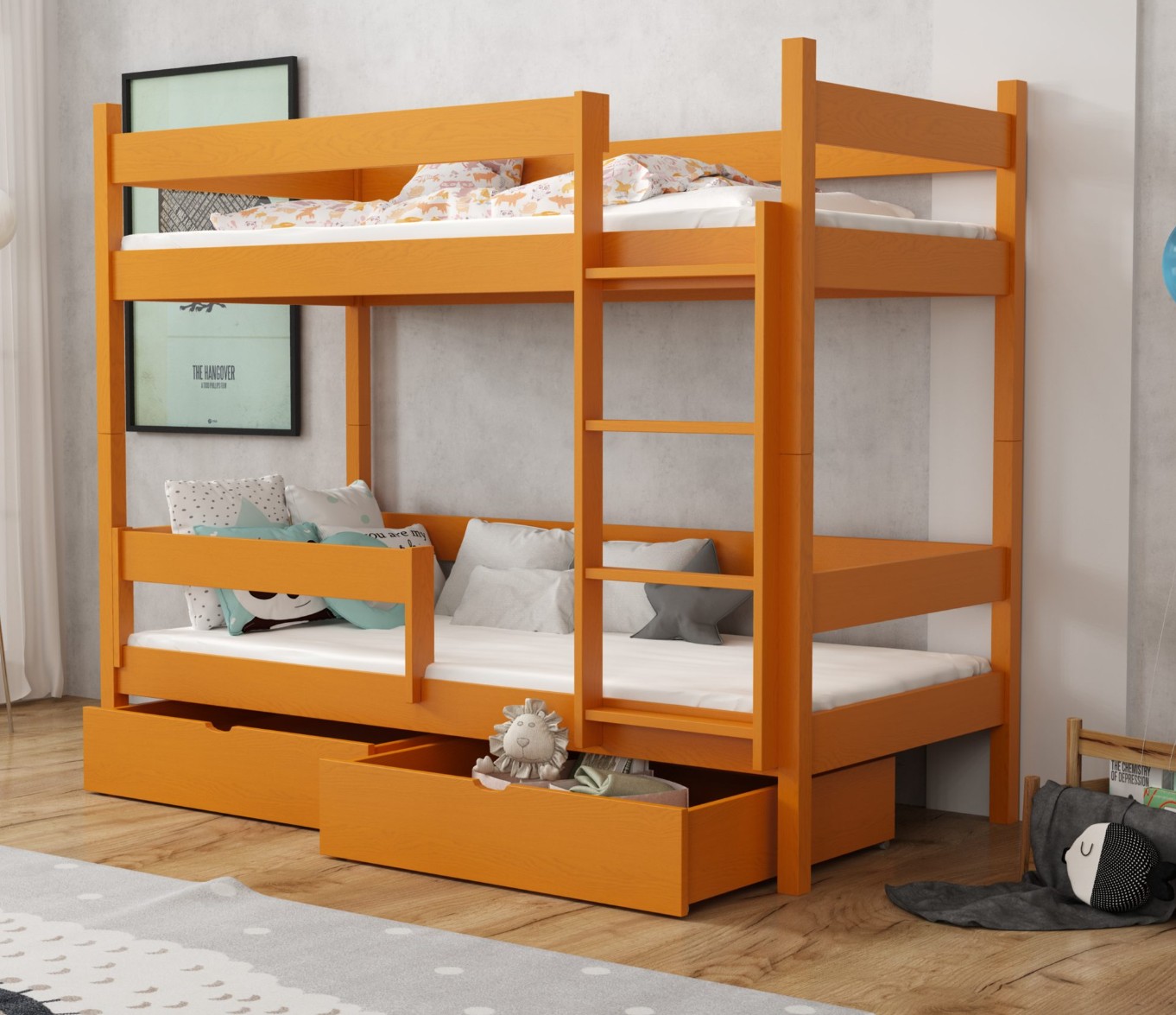 Detská poschodová posteľ z masívu borovice LEGEND so šuplíkmi - 200x90 cm