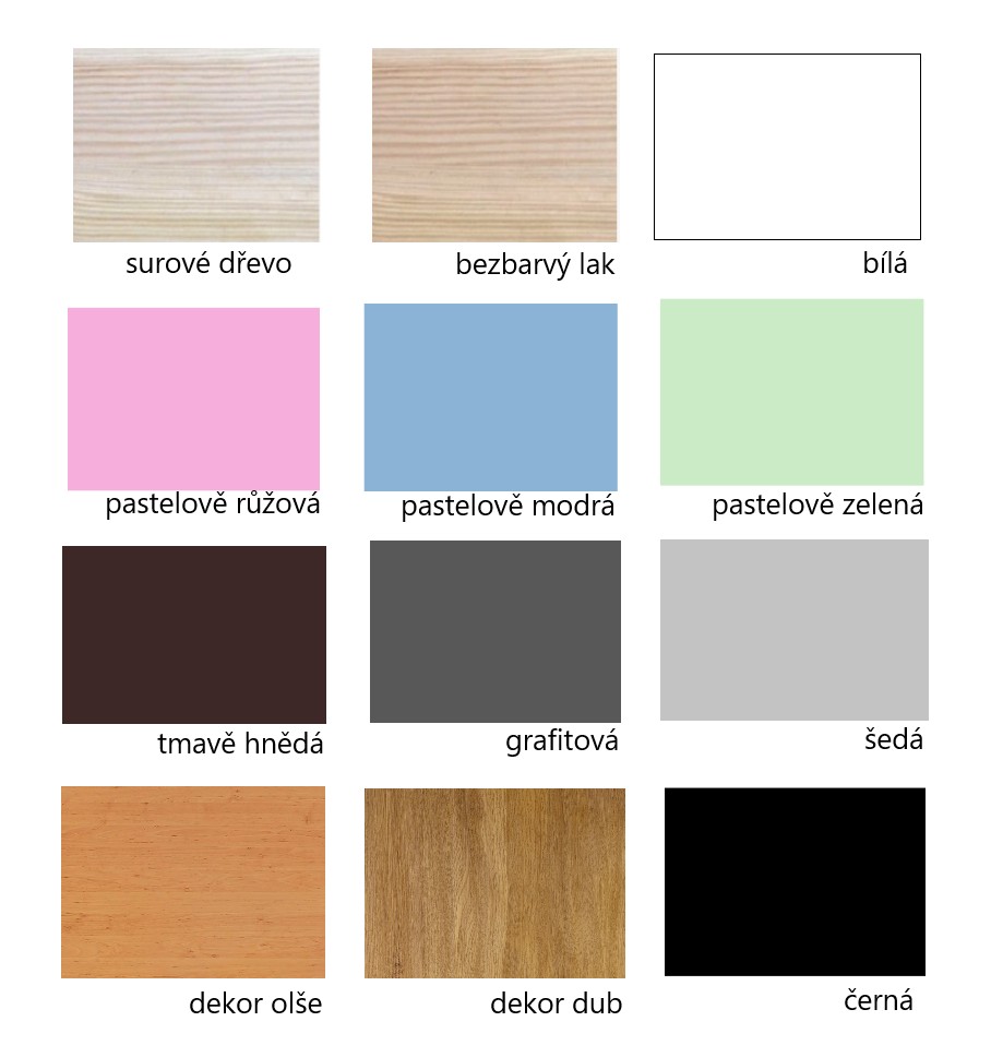 - zásuvky: borovicové drevo, nábytková doska, sololit