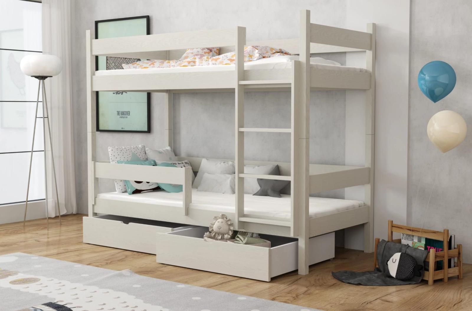 Detská poschodová posteľ z masívu borovice LEGEND so šuplíkmi - 200x90 cm