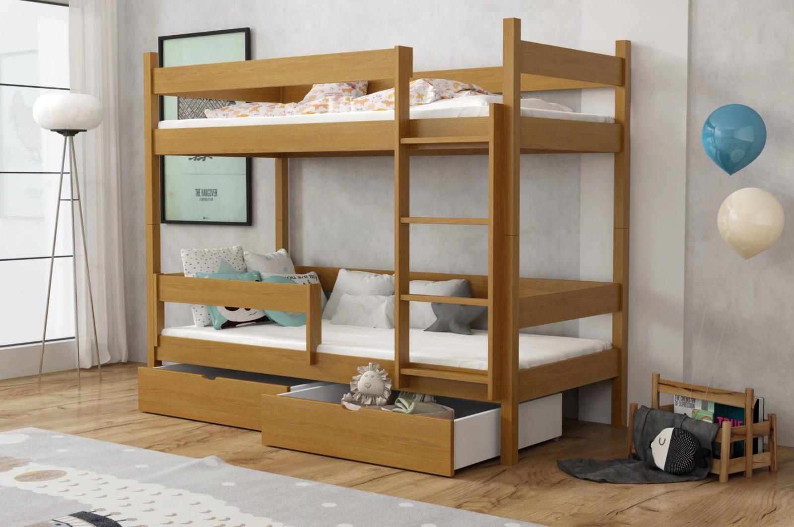 Detská poschodová posteľ z masívu borovice LEGEND so šuplíkmi - 200x90 cm