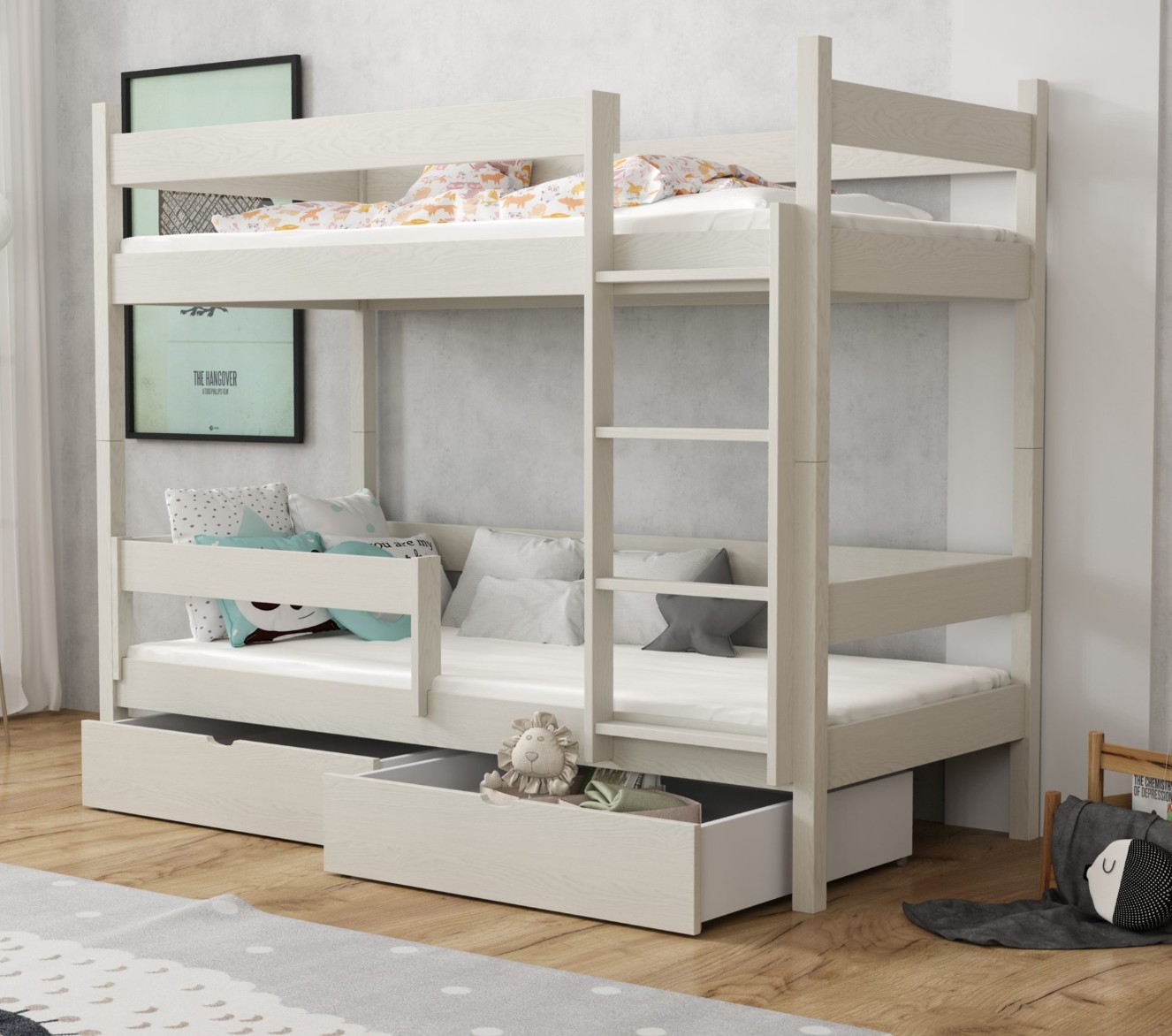 Detská poschodová posteľ z masívu borovice LEGEND so šuplíkmi - 200x90 cm