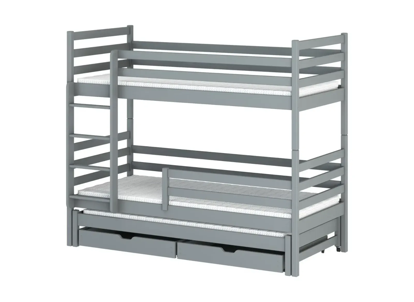 Detská poschodová posteľ z masívu borovice LUKÁŠ s prístelkou a šuplíkmi - 200x90 cm - ŠEDÁ