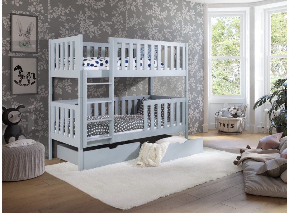 Detská poschodová posteľ z masívu borovice MICHAELA so šuplíkmi - 200x90 cm - ŠEDÁ